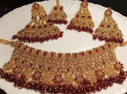 - Design: Intricate, linked segments for a comfortable collar fit, resembling traditional Kundan or Mughal jewelry styles.