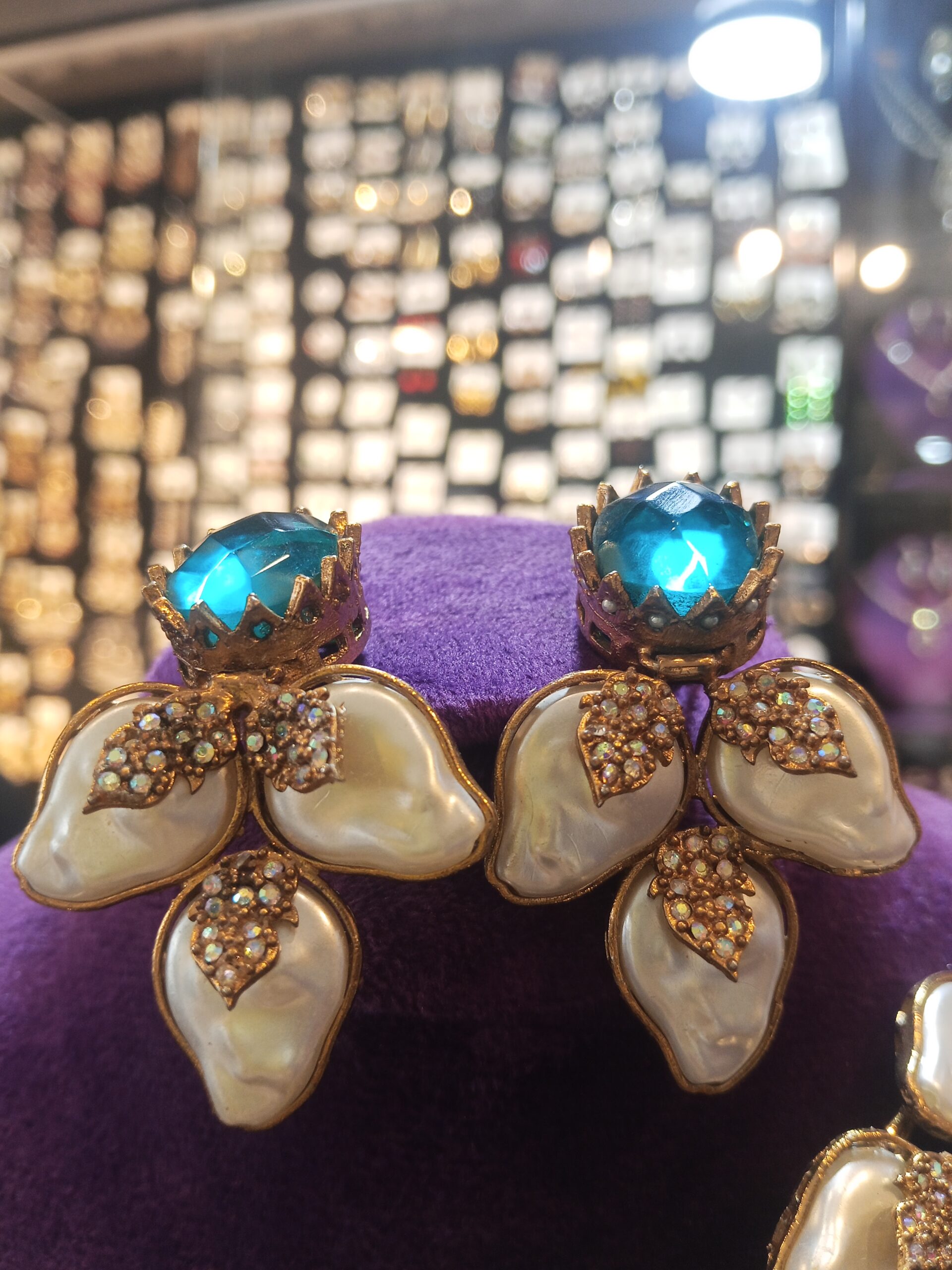 Mint Green Stone & Baroque Pearl Dangle Earrings - Floral Motif Bridal Statement Jewelry Original price was: ₨ 7,000.Current price is: ₨ 5,000.