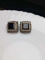 - Main Stones: Polished, smooth Square Black Onyx (or similar stone) that creates a sophisticated focal point.