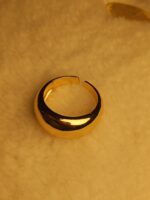 Make a sophisticated statement with the Bold Gold Dome Adjustable Ring. This contemporary piece is defined by its smooth, chunky dome silhouette and mirror-like high-polish gold finish. Inspired by the trending croissant or bubble ring style, it adds instant volume and modern flair to any hand. The open-back design ensures it is easily adjustable, offering a comfortable and customizable fit. It’s the perfect accessory to elevate both casual and formal looks.