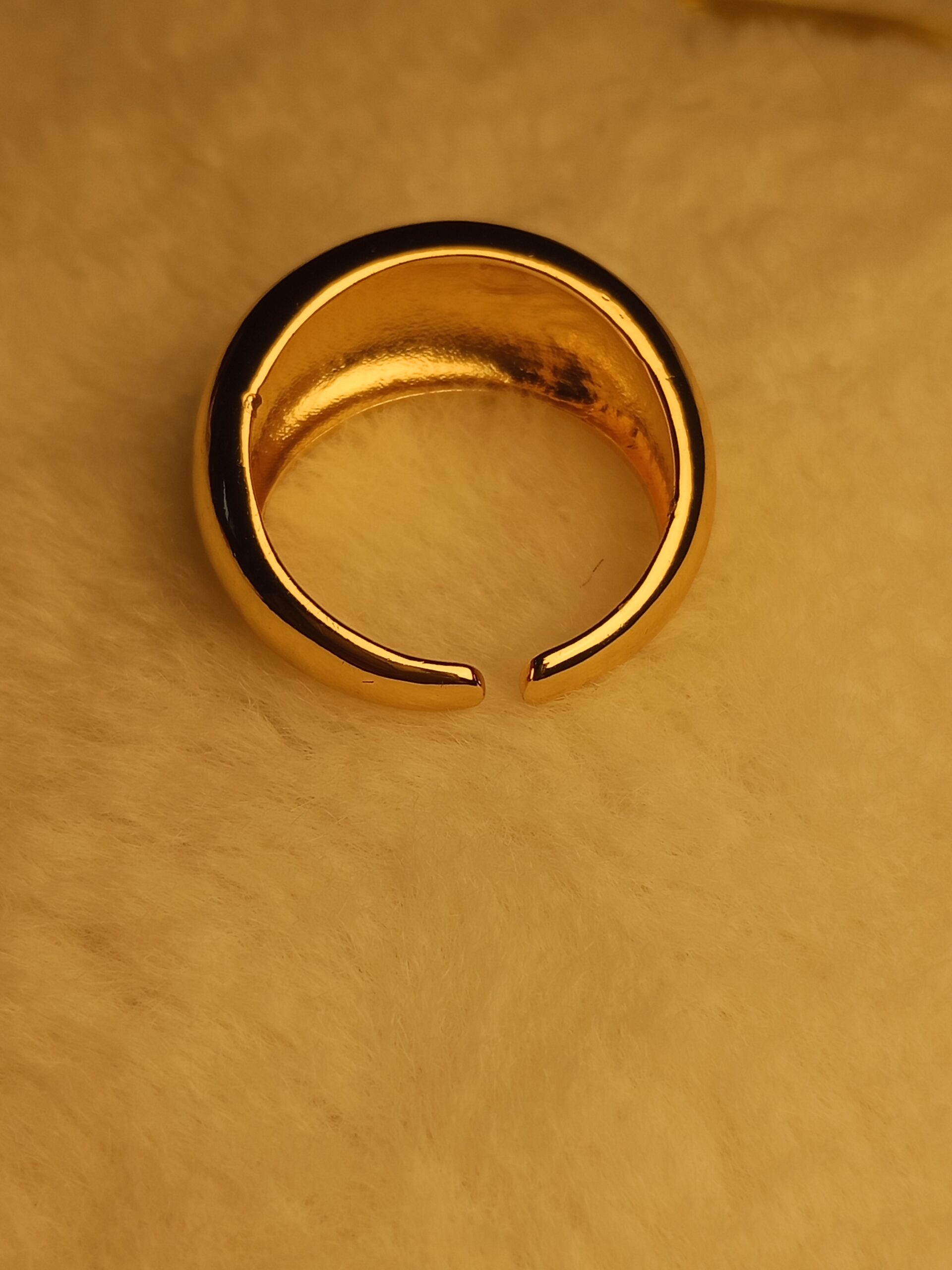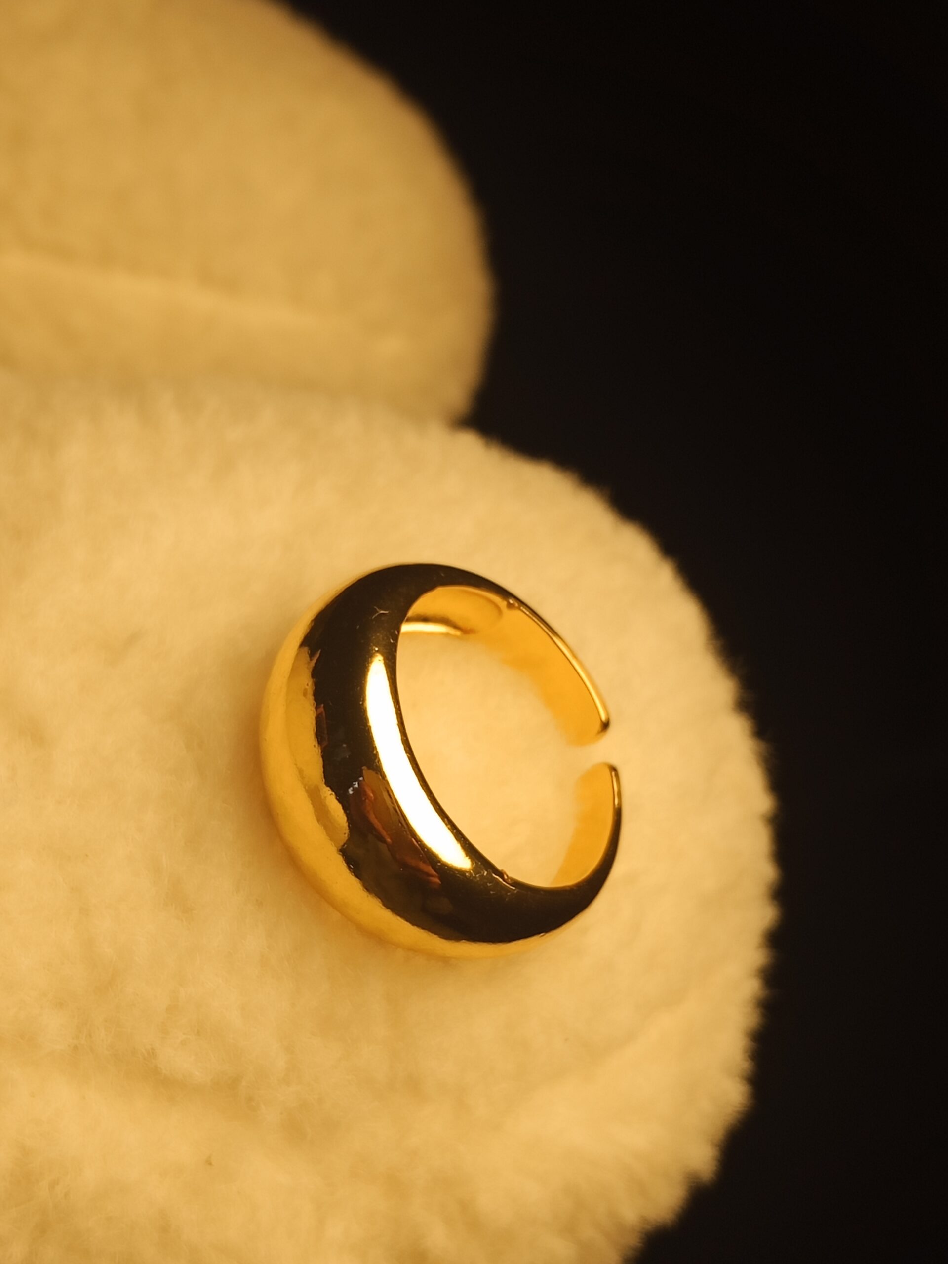 Make a sophisticated statement with the Bold Gold Dome Adjustable Ring. This contemporary piece is defined by its smooth, chunky dome silhouette and mirror-like high-polish gold finish. Inspired by the trending croissant or bubble ring style, it adds instant volume and modern flair to any hand. The open-back design ensures it is easily adjustable, offering a comfortable and customizable fit. It’s the perfect accessory to elevate both casual and formal looks.