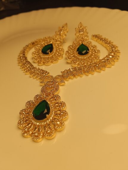 • Center Stone: Intense oval-cut Ruby Red simulant or high-grade Zircon, offering a vibrant, romantic hue.