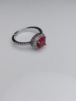 Brilliant Ruby Oval Halo Adjustable Silver Ring – Passionate Statement Jewelry