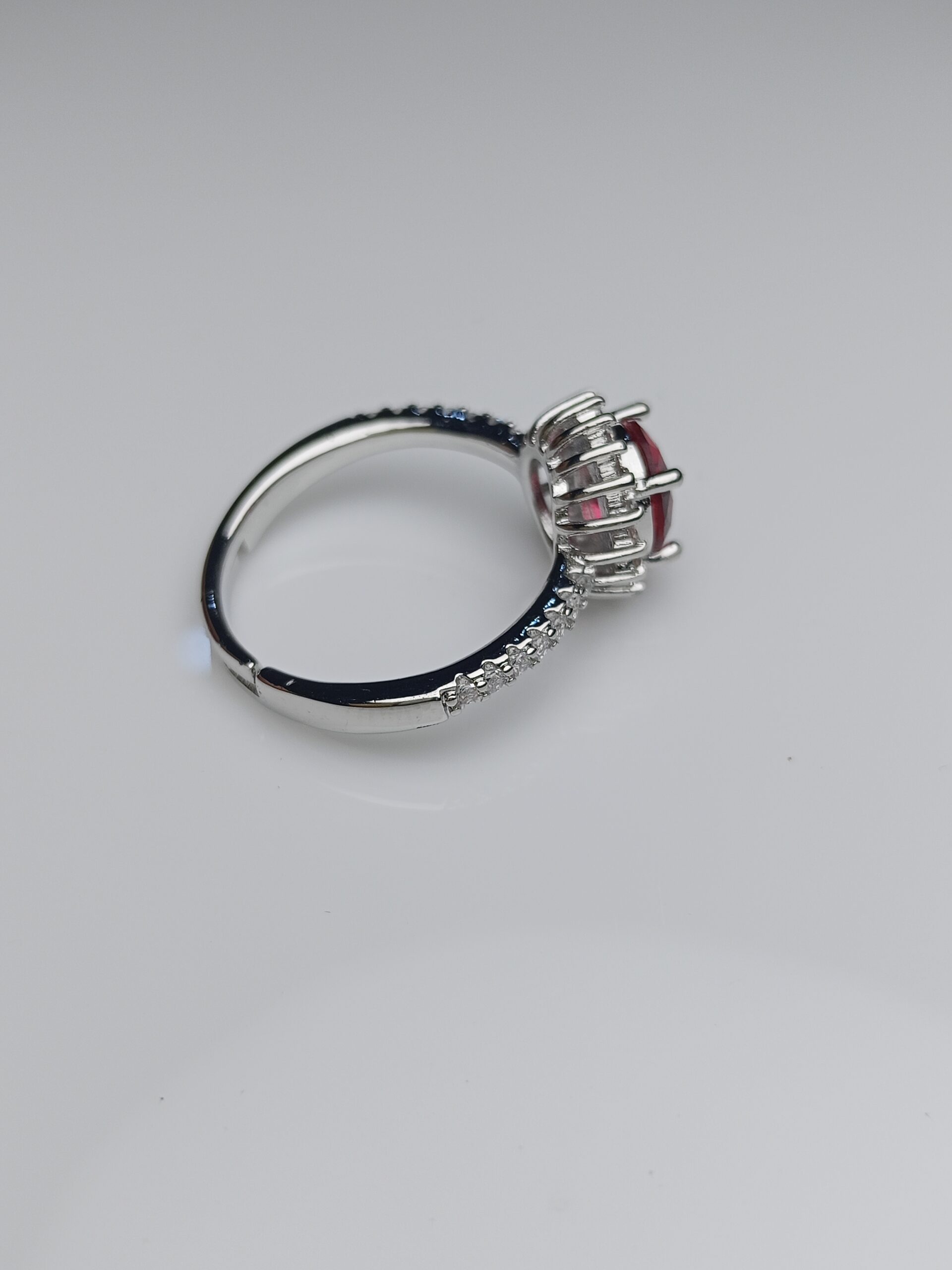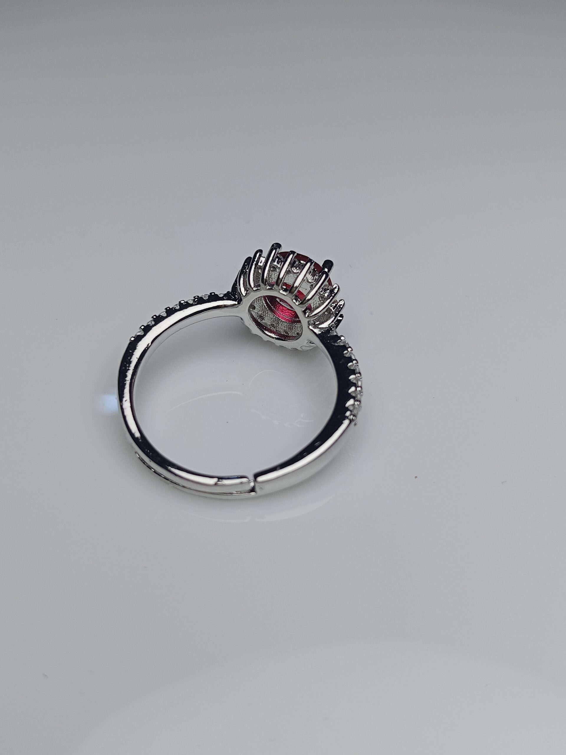 Ignite your style with the vibrant intensity of this Brilliant Ruby Oval Halo Adjustable Ring. The focal point is a fiery, captivating oval-cut Ruby Red (or Pink-Red Zircon) center stone, symbolizing love and passion. This spectacular stone is encircled by a sparkling halo of white zircons, while the adjustable band features a sleek, pave-set section for added brilliance. Its rich color and luxurious sparkle make this ring an unforgettable statement piece, perfect for anniversaries, Valentine’s Day, or celebrating a confident style.