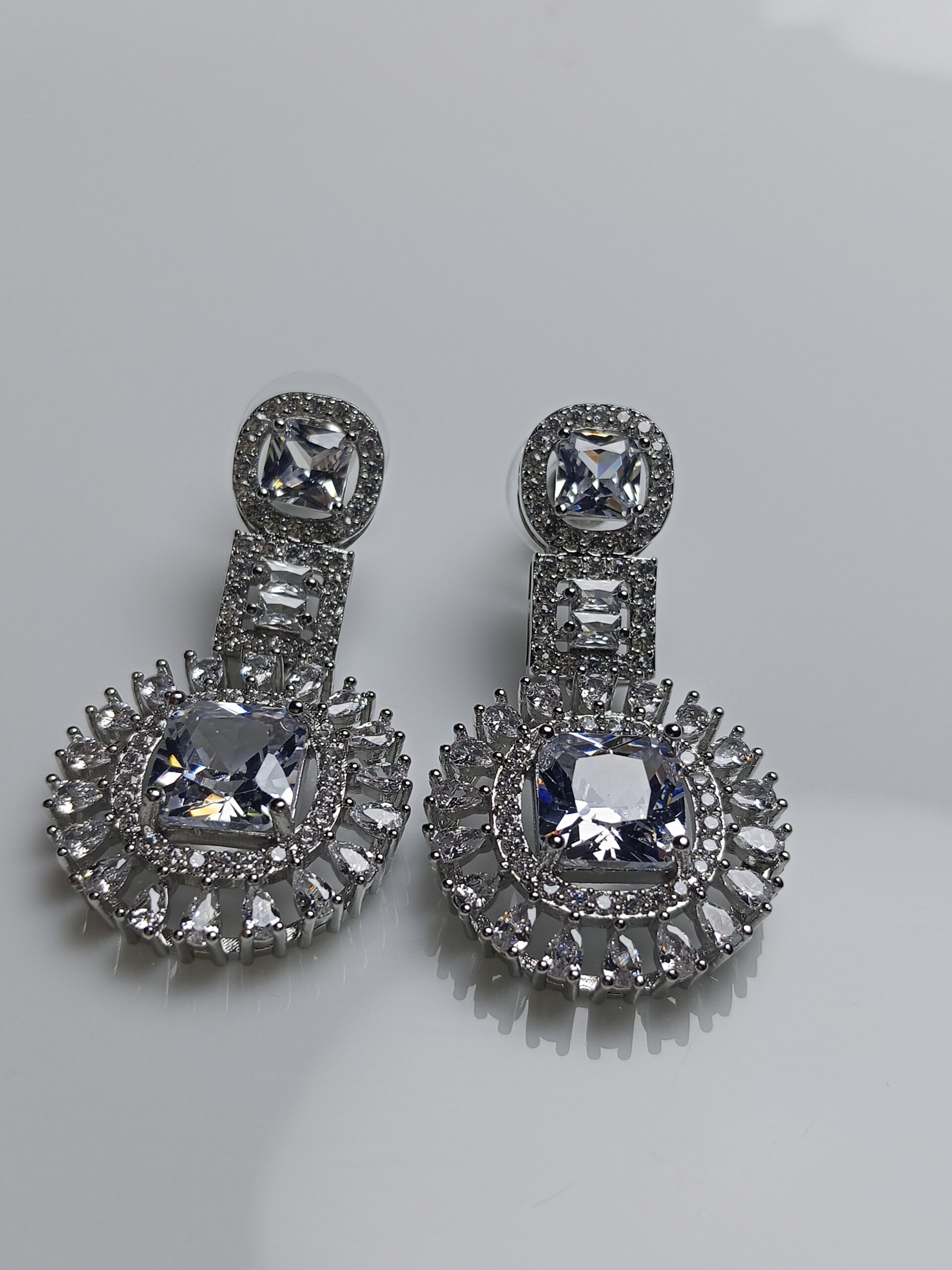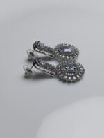 The entire piece shines with a premium silver or rhodium-plated finish, giving it the look and feel of high-end fine jewelry. This all-white design is a timeless choice, making it absolutely perfect for brides, wedding parties, anniversary celebrations, or any formal event where only the most brilliant sparkle will do.