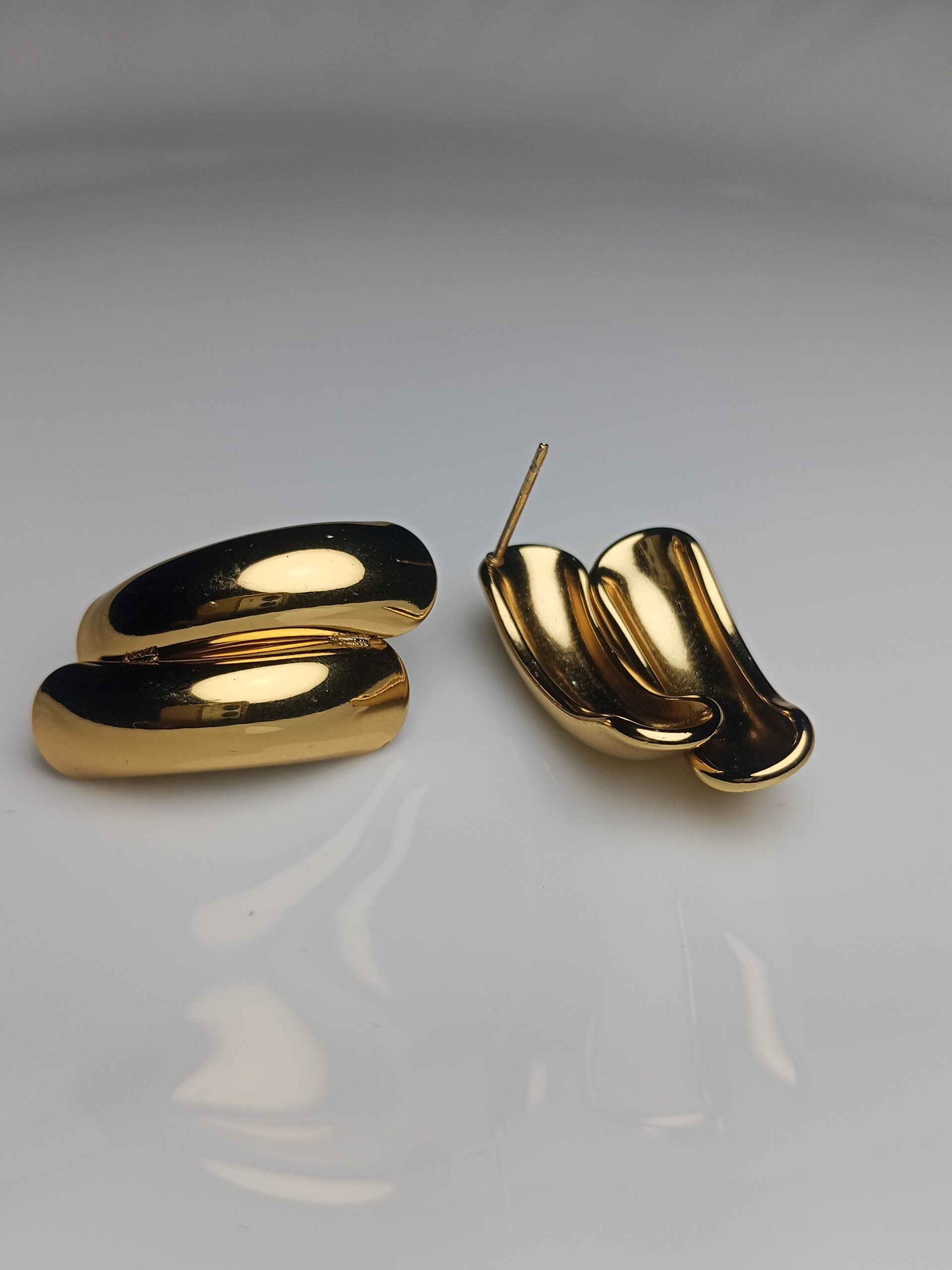 Crafted with a brilliant high-shine gold plating, the interlocking curves catch the light beautifully, making them an ideal accessory for both everyday chic and evening sophistication. They provide a chunky, substantial look without the heavy feel, secured comfortably with a classic stud post back. These are the perfect timeless pieces to add to your collection.