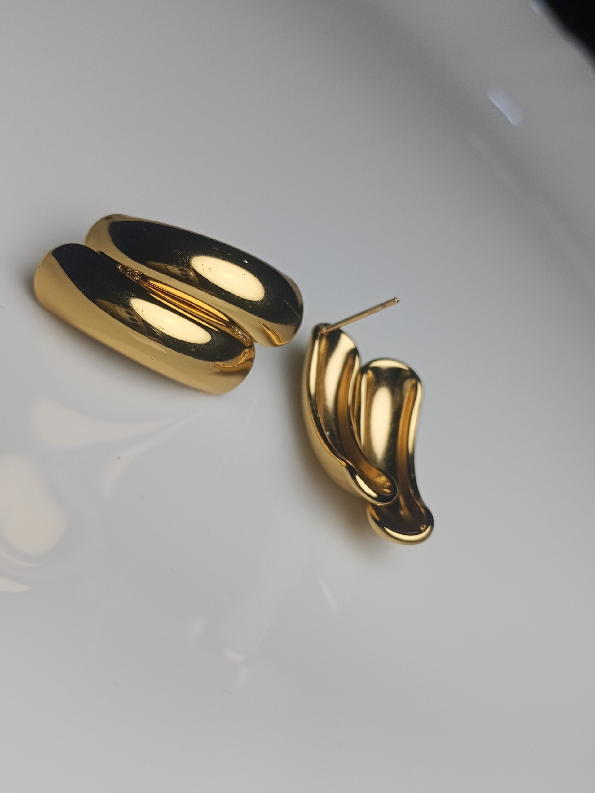 Elevate your style with these stunning Double-Wave Huggie Stud Earrings. Inspired by classic 90s glamour and modern minimalism, these earrings feature a smooth, sculptural design that creates a bold yet elegant silhouette.