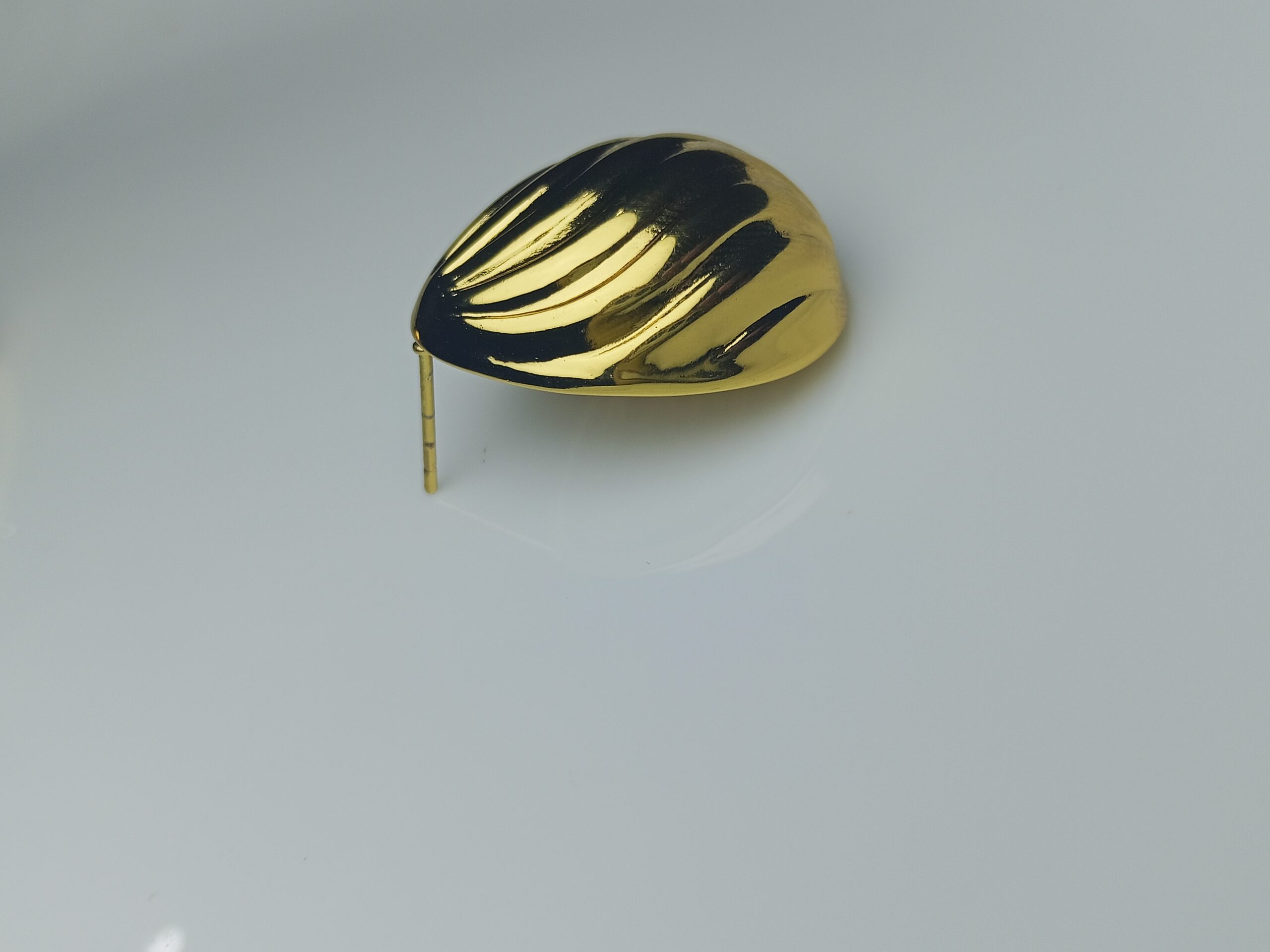 • Design: Two-part drop earring with a small upper dome stud and a larger lower sculpted dome drop.