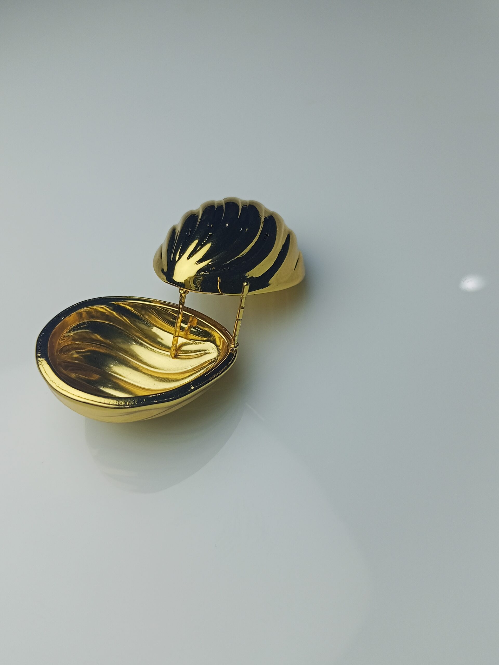 Make a powerful fashion statement with our Chunky Gold Sculpted Dome Drop Earrings. Inspired by bold, vintage runway aesthetics, these earrings feature a striking two-piece design. A smaller, fluted dome stud sits securely on the earlobe, from which a larger, complementary sculpted drop piece hangs. Both elements boast a gorgeous, high-polish gold finish with a fluid, wavy texture that catches and reflects light dramatically. These earrings offer significant visual weight without feeling too heavy and are the perfect accessory to add opulent texture and a touch of retro glamour to any outfit, from structured business wear to a vibrant Pakistani formal ensemble.