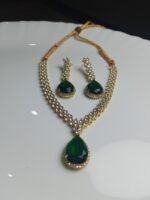 Classic Emerald Green Tear Drop Necklace & Earring Set | Gold Plated Party Wear
