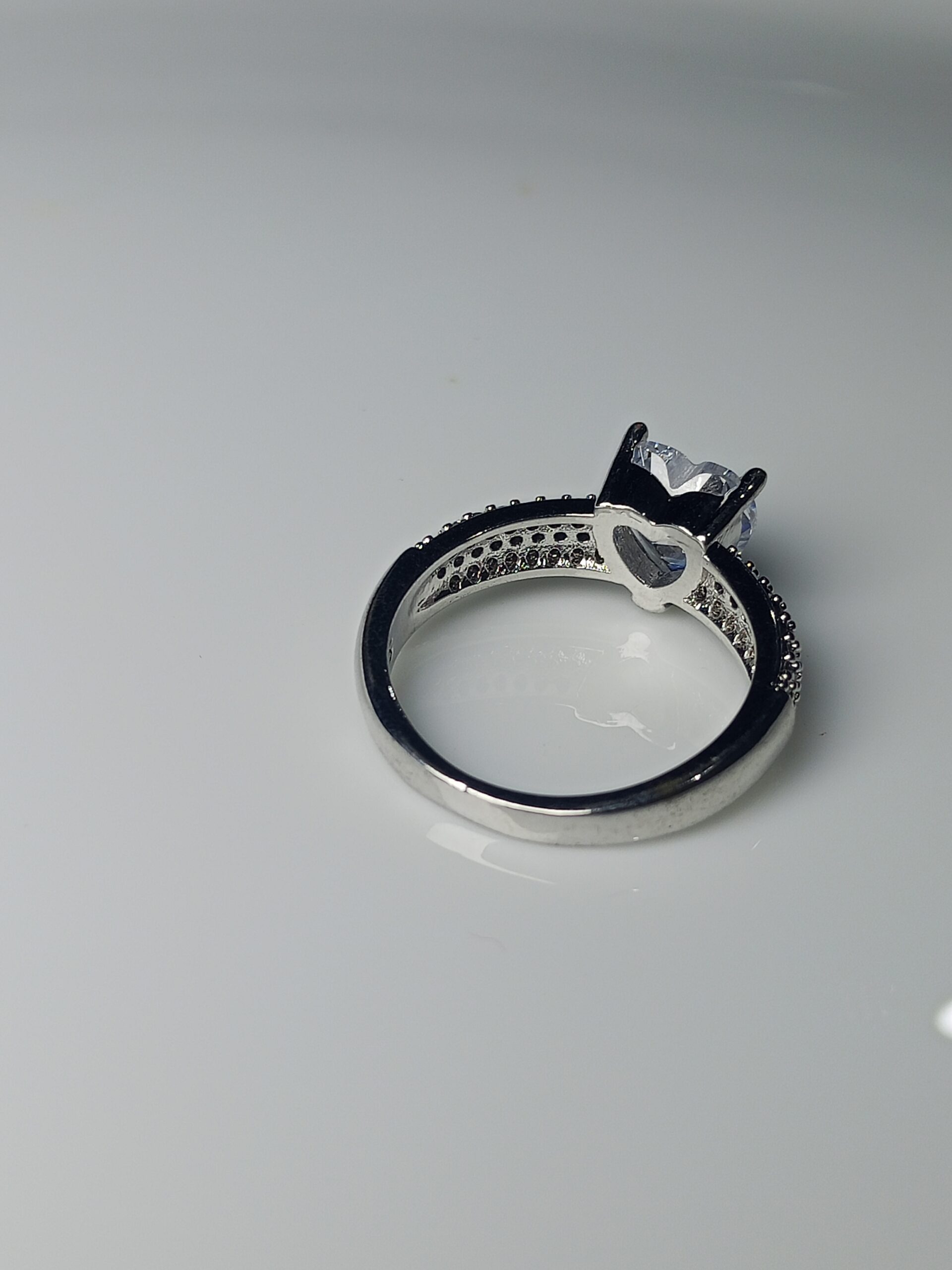 Classic Silver Solitaire Engagement Ring with Pave Band – Timeless Cubic Zirconia Promise Ring