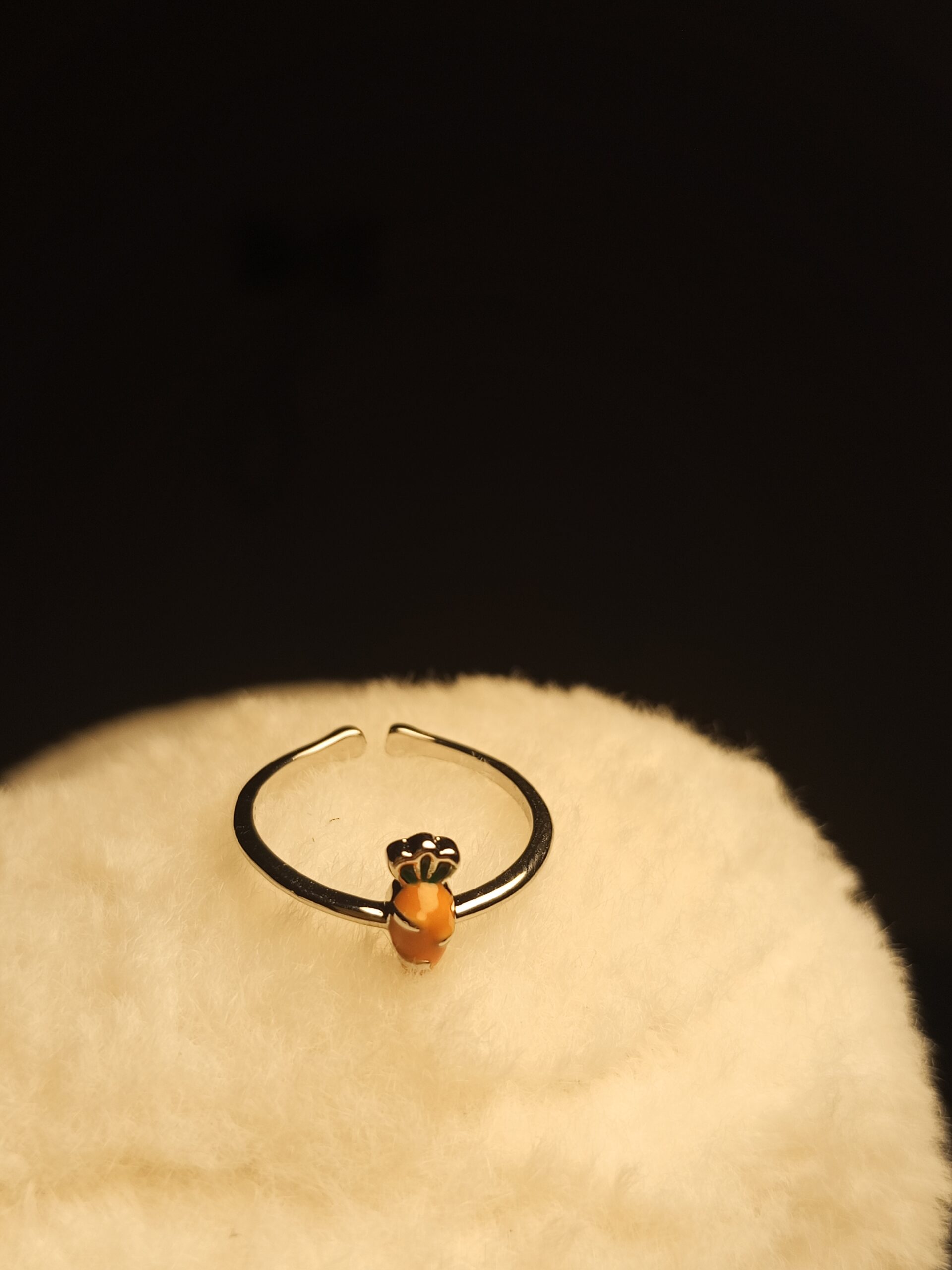 The tiny, detailed carrot in vibrant orange and green adds a fun novelty element, making it a delightful conversation starter. The ring features a thin, adjustable design, ensuring a comfortable fit for any finger. It’s the perfect quirky accessory for nature lovers, minimalists who enjoy a splash of fun, or anyone looking for a unique gift!