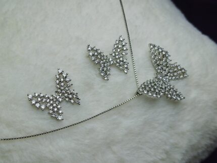 Sparkling Pave CZ Butterfly Necklace and Earrings Set