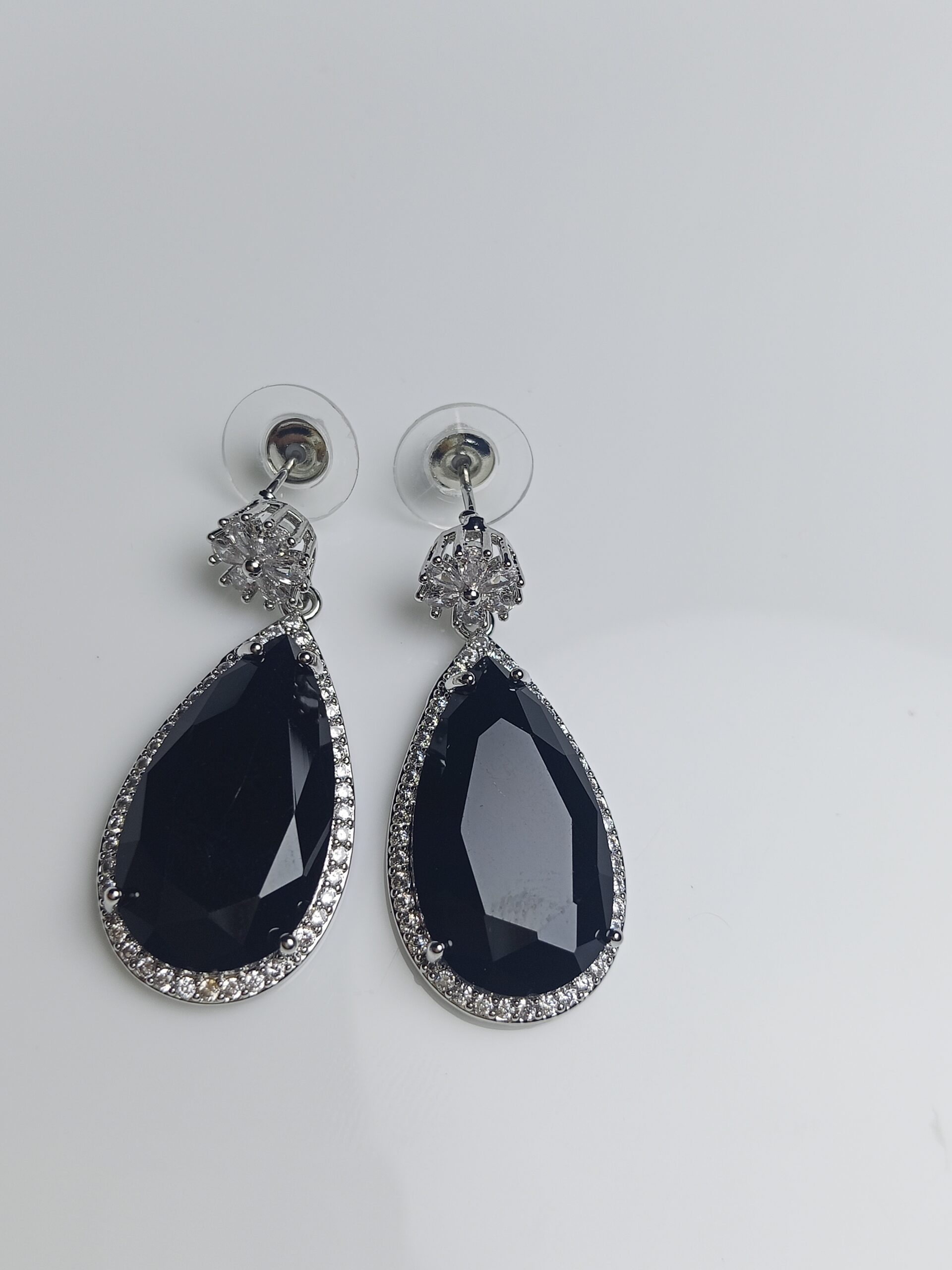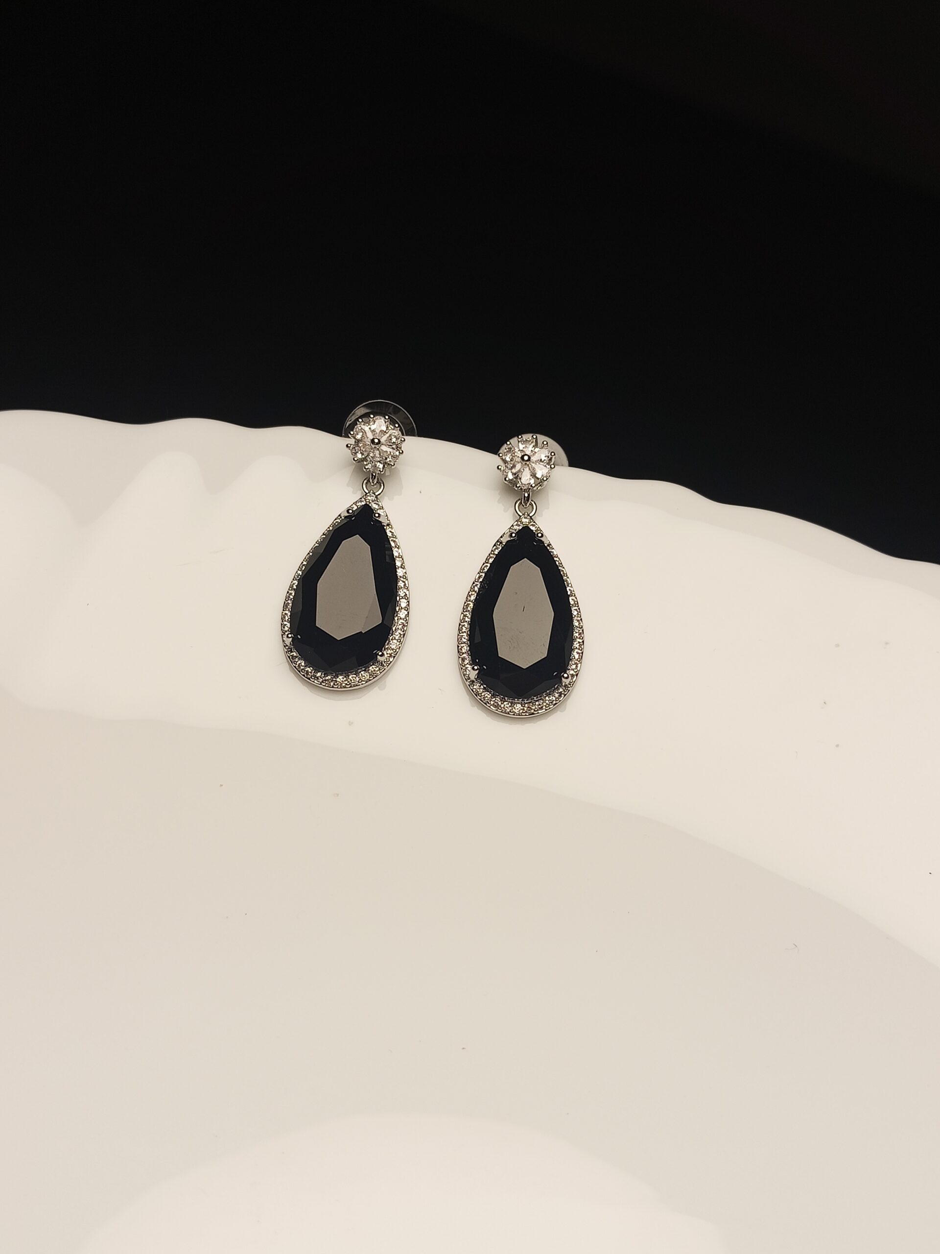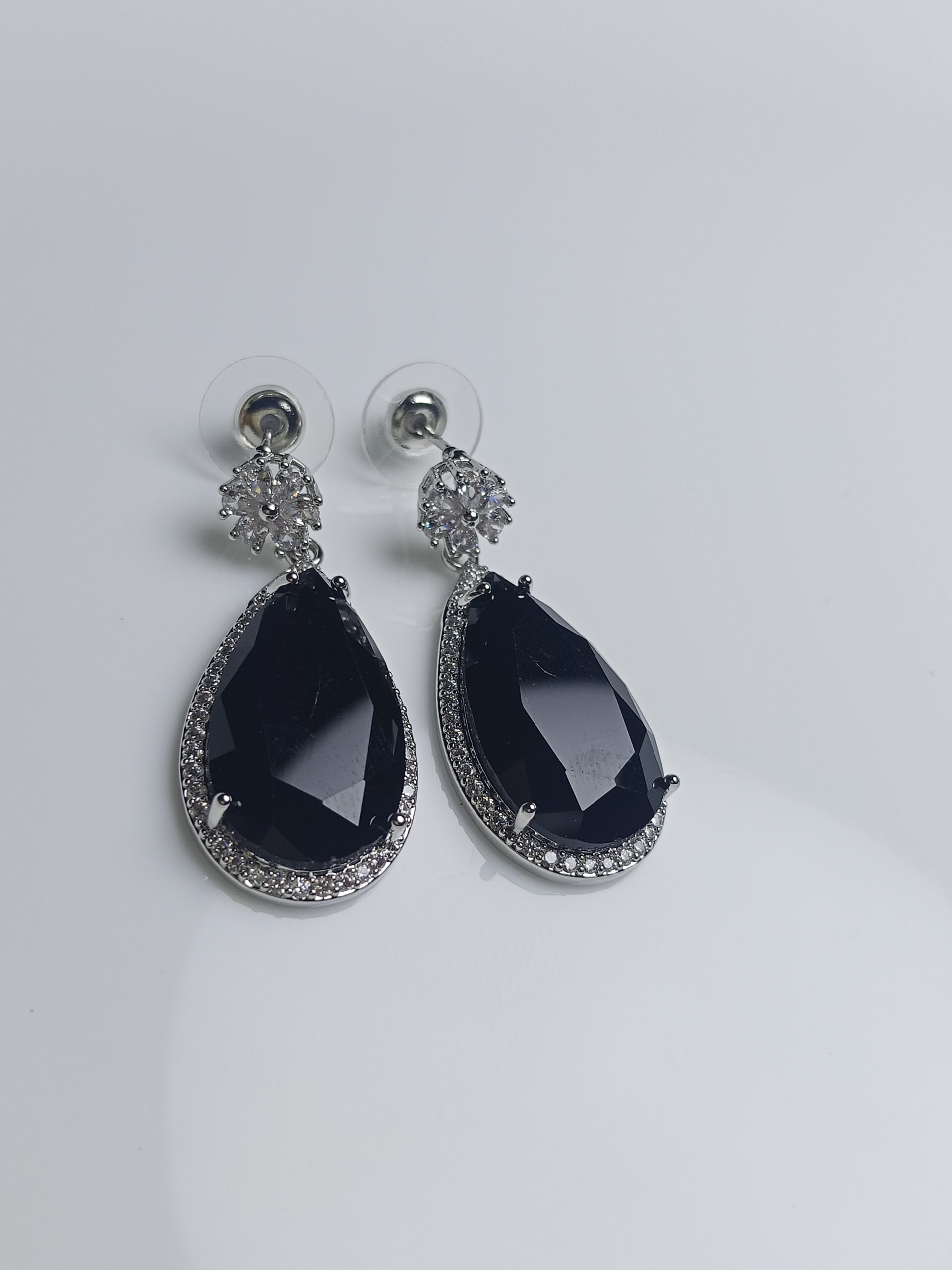 Elegant Black Teardrop Dangle Earrings with Zircon Accent