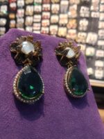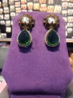 - Design: Elegant two-piece drop earrings with an intricate floral stud and a gemstone pendant.