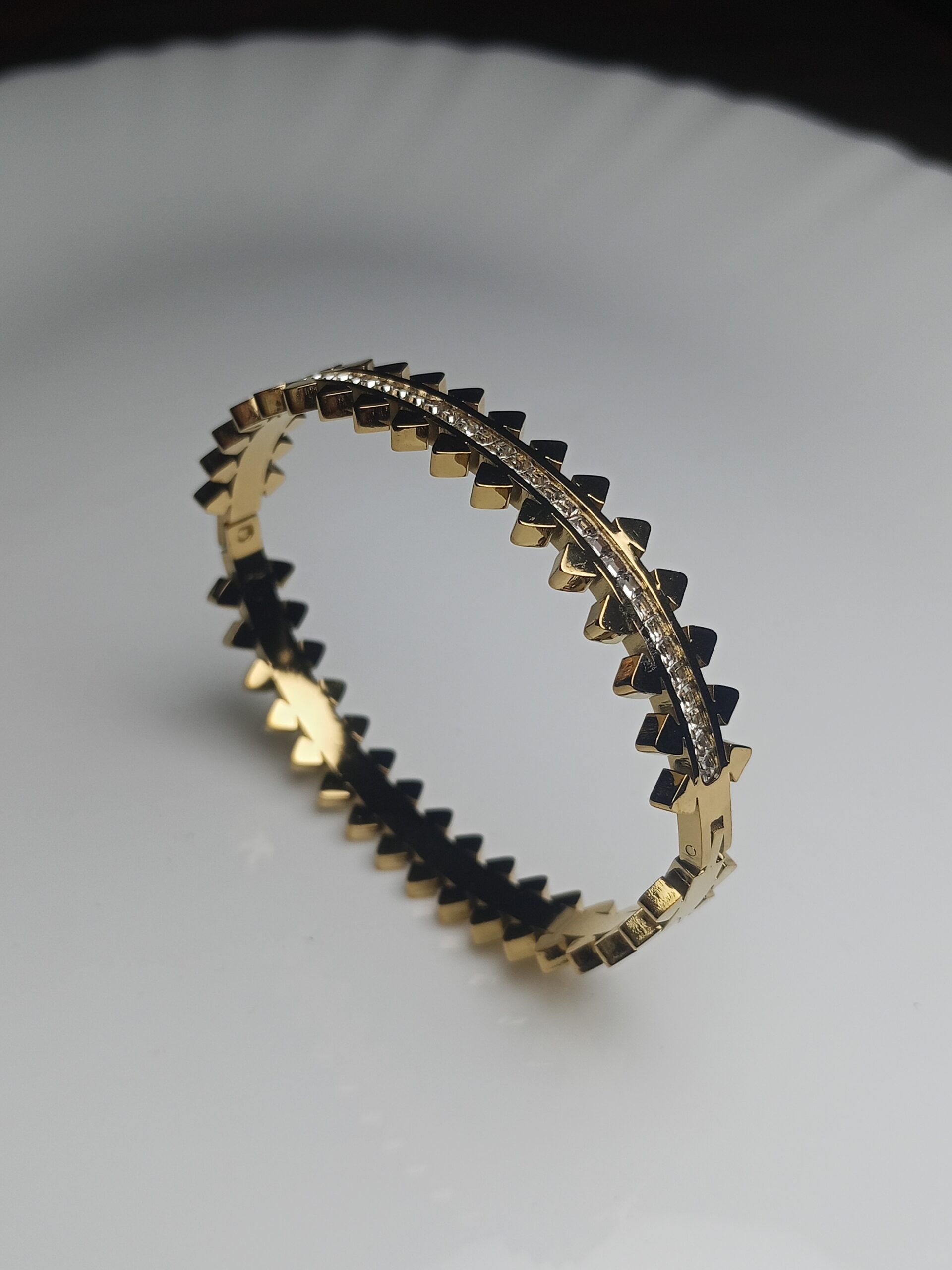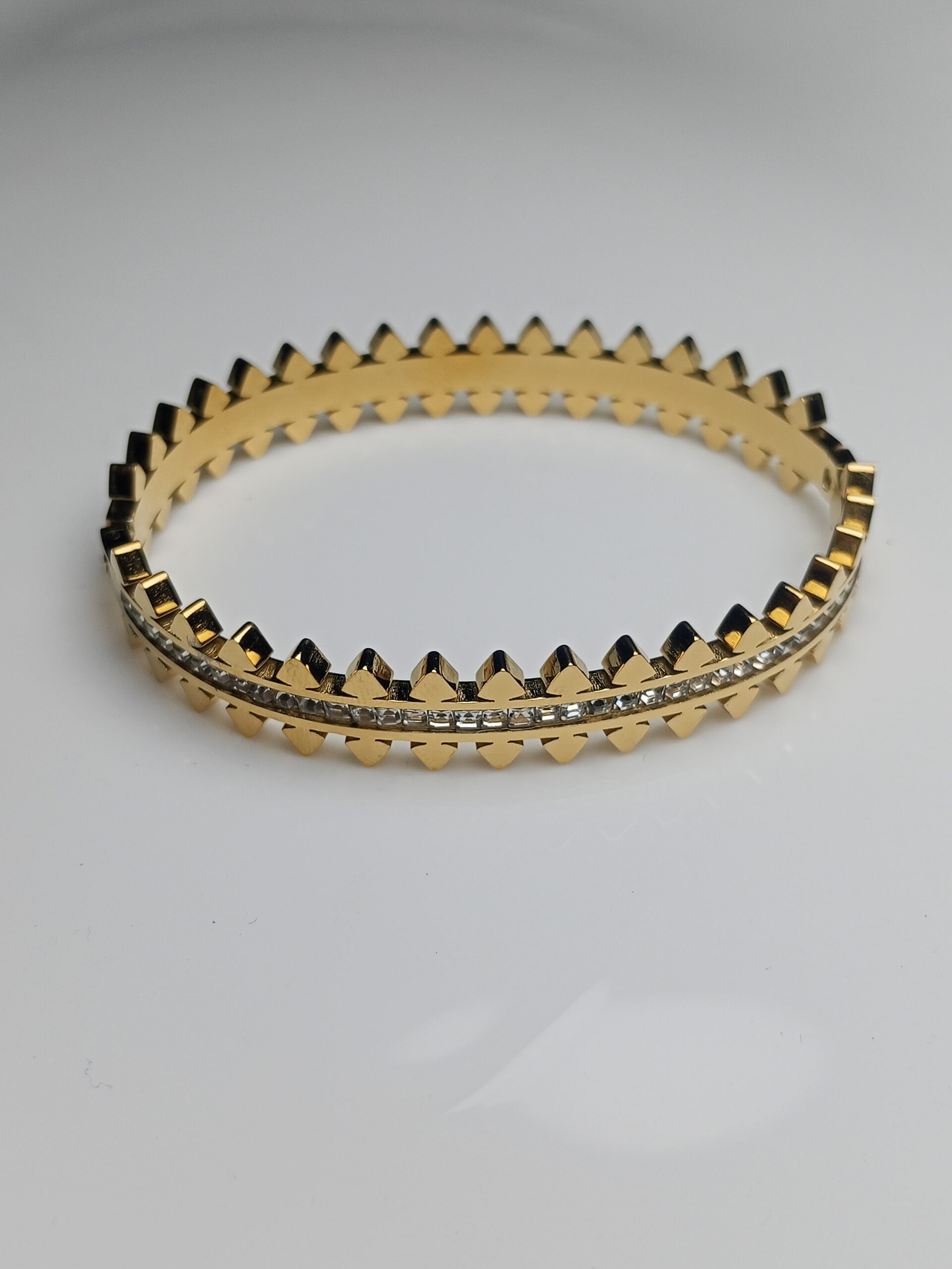 • Keywords: Spiked Bangle, Geometric Jewelry, Gold Bracelet, Crystal Inlay, Edgy Cuff, Statement Stackable.