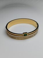 Designer Inspired Gold Monogram Pattern Bangle | Green and Red Enamel Stripe Bracelet