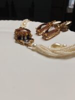 - Elegant Two-Piece Set: Includes a centerpiece choker necklace with multi-strand pearl bands and a pair of matching stud/drop earrings.