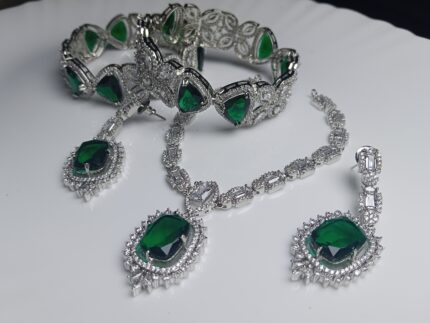 Emerald Pave Floral Pendant & Pearl Beaded Necklace Set