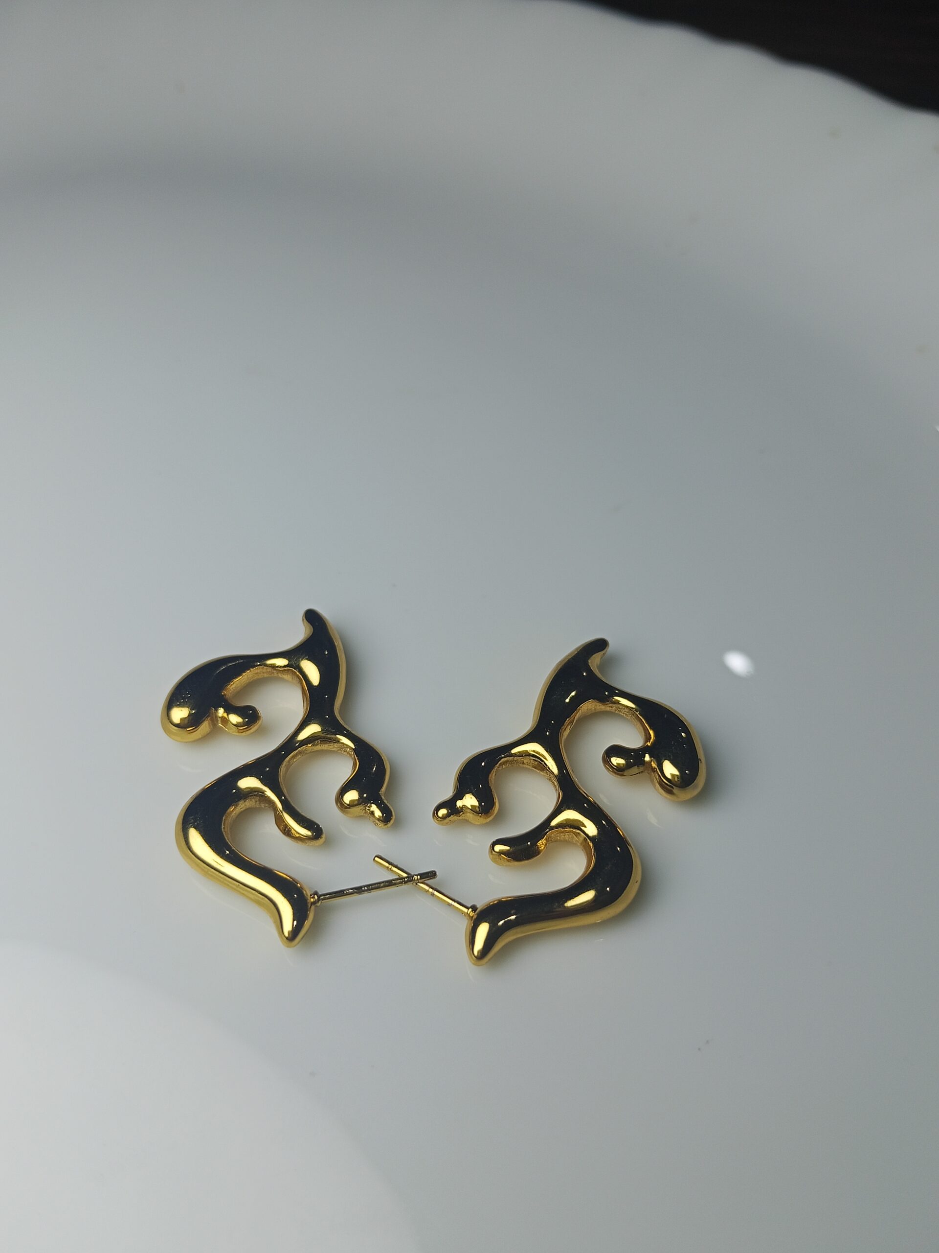 High-Polish Gold Abstract Swirl Stud Earrings | Modern Flame Statement Jewelry