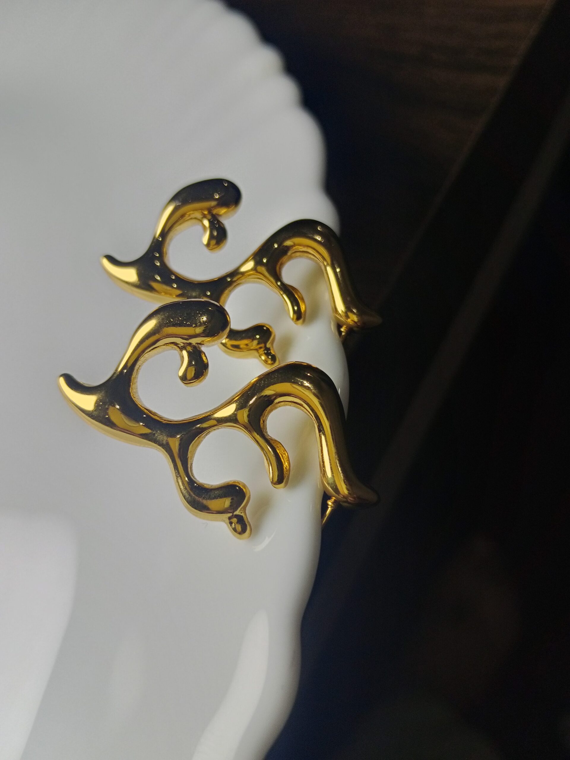 Make a bold artistic statement with our High-Polish Gold Abstract Swirl Stud Earrings. These striking earrings feature a unique, sculptural design that resembles a flowing flame, an intricate flourish, or abstract calligraphy. The mirror-like high-shine gold finish catches the light beautifully, adding a touch of modern luxury to any look. Unlike traditional jewelry, these pieces are a work of art, perfect for the contemporary woman who appreciates unique and minimalist aesthetics with maximum impact. They are lightweight enough for comfortable wear but bold enough to be the focal point of your outfit, easily transitioning from day to a sophisticated evening event.
