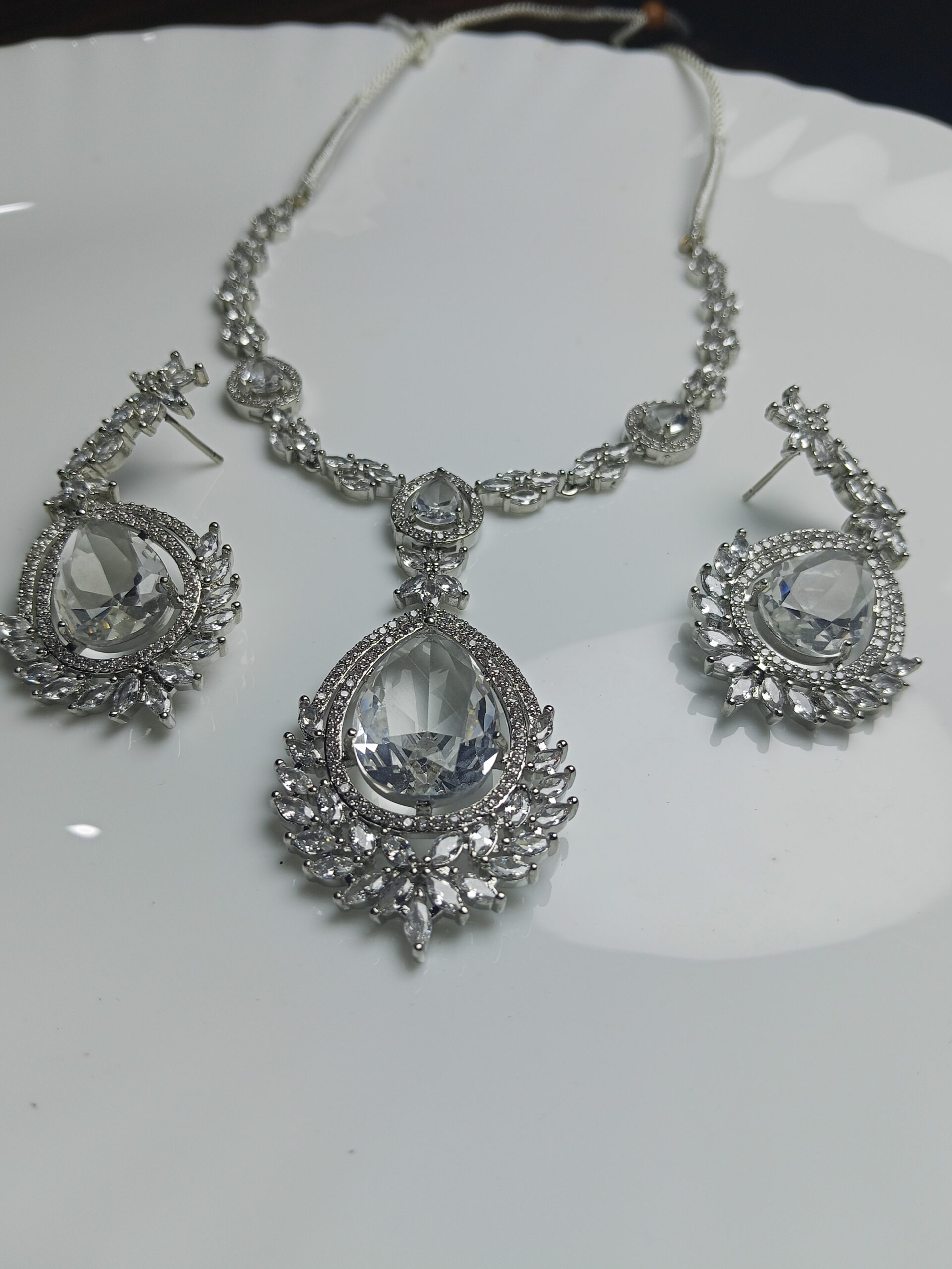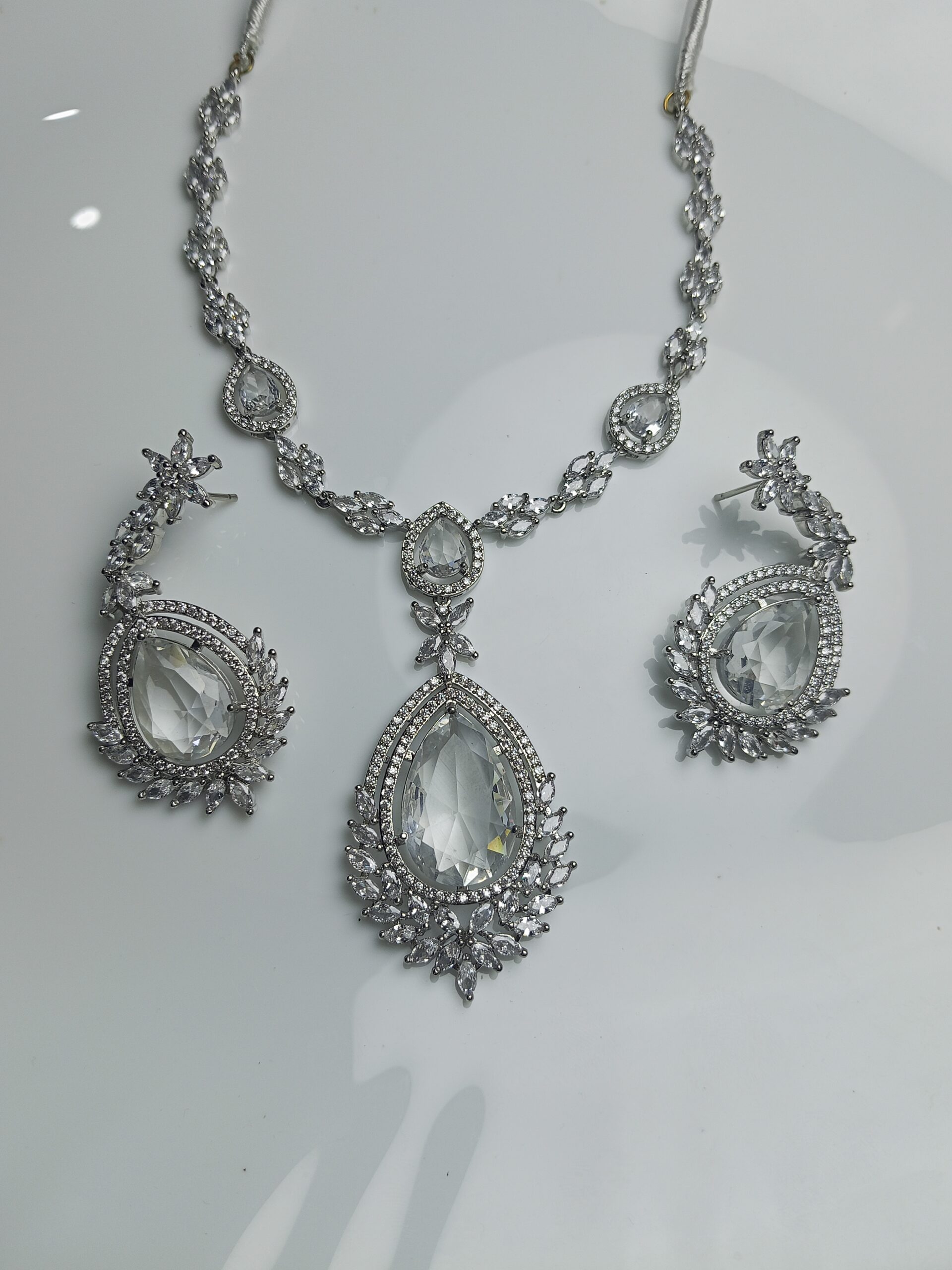 Ice Queen Clear Crystal Statement Necklace & Earring Set | Silver Plated Bridal