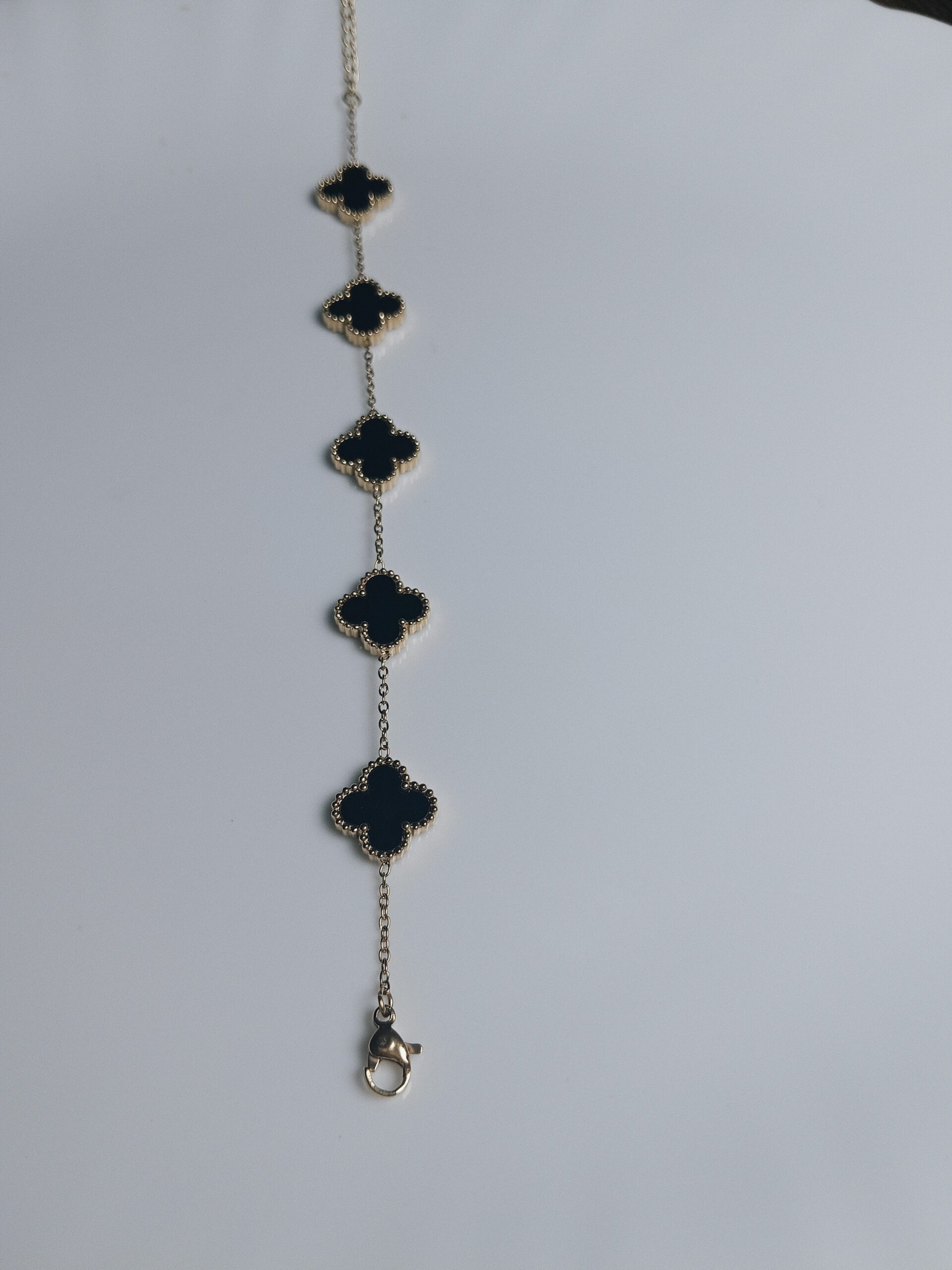 • Design: Five connected four-leaf clover charms forming the main body of the bracelet.