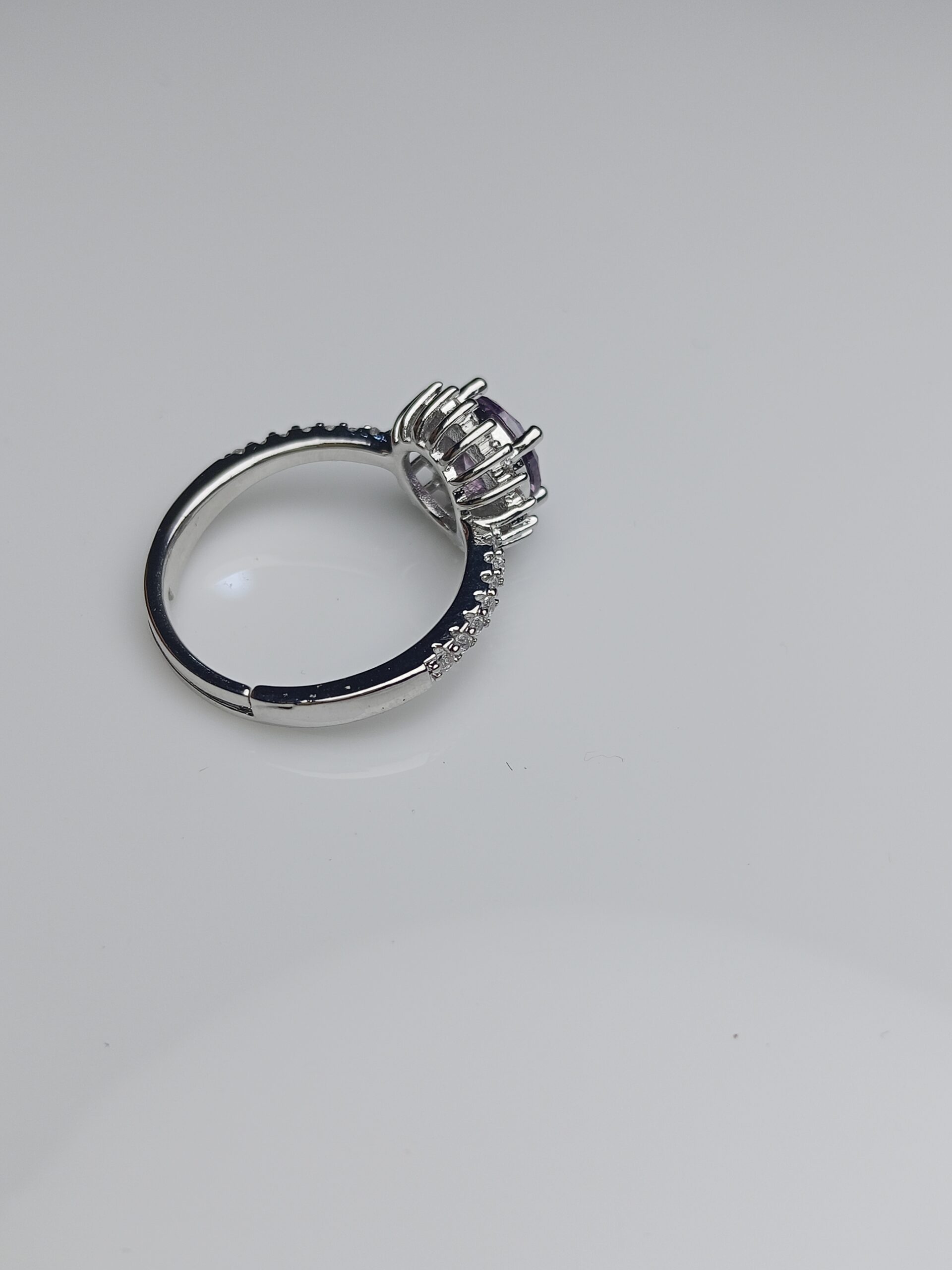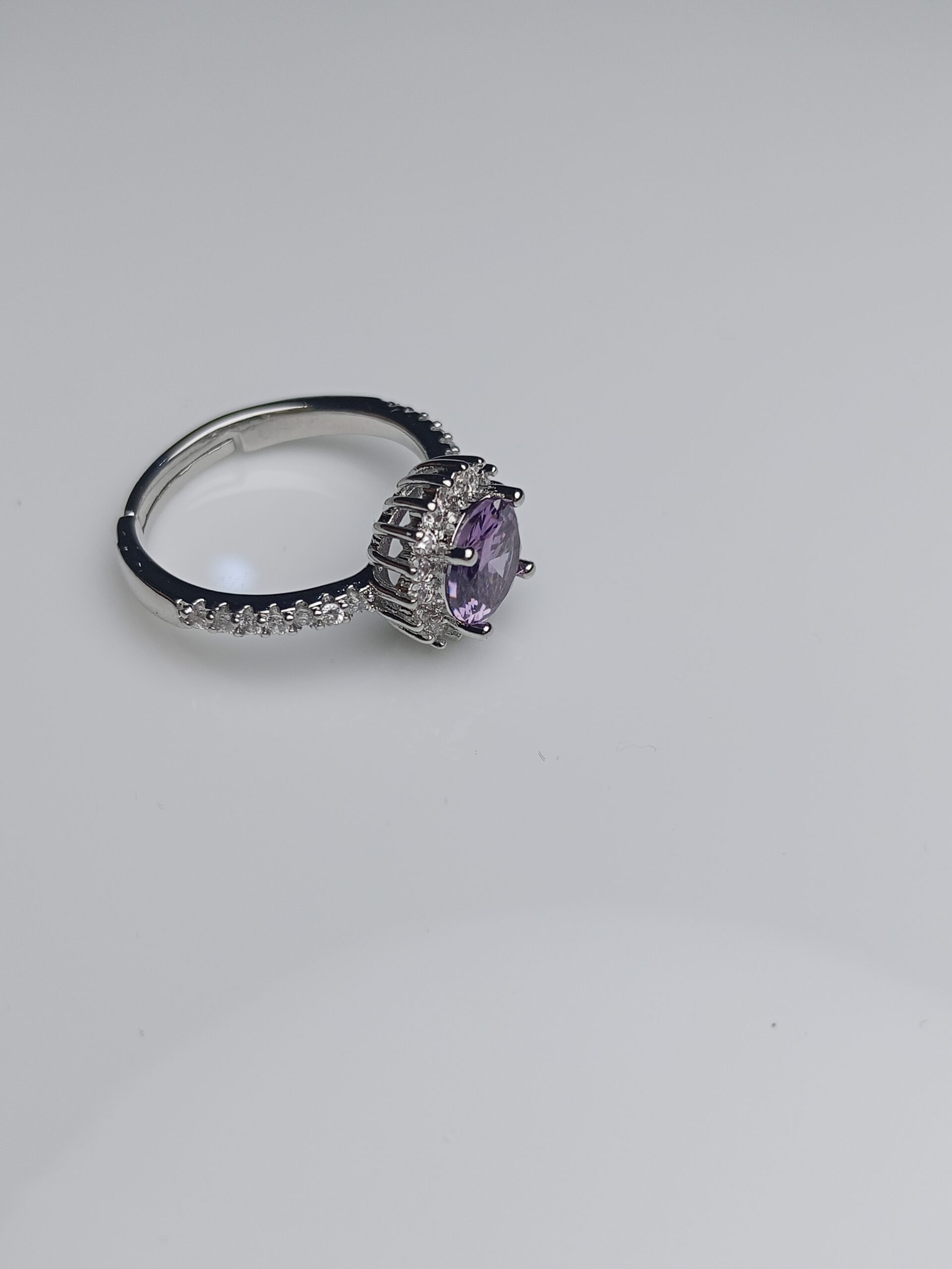 Lavender Amethyst Halo Adjustable Silver Ring – Elegant Zircon Band