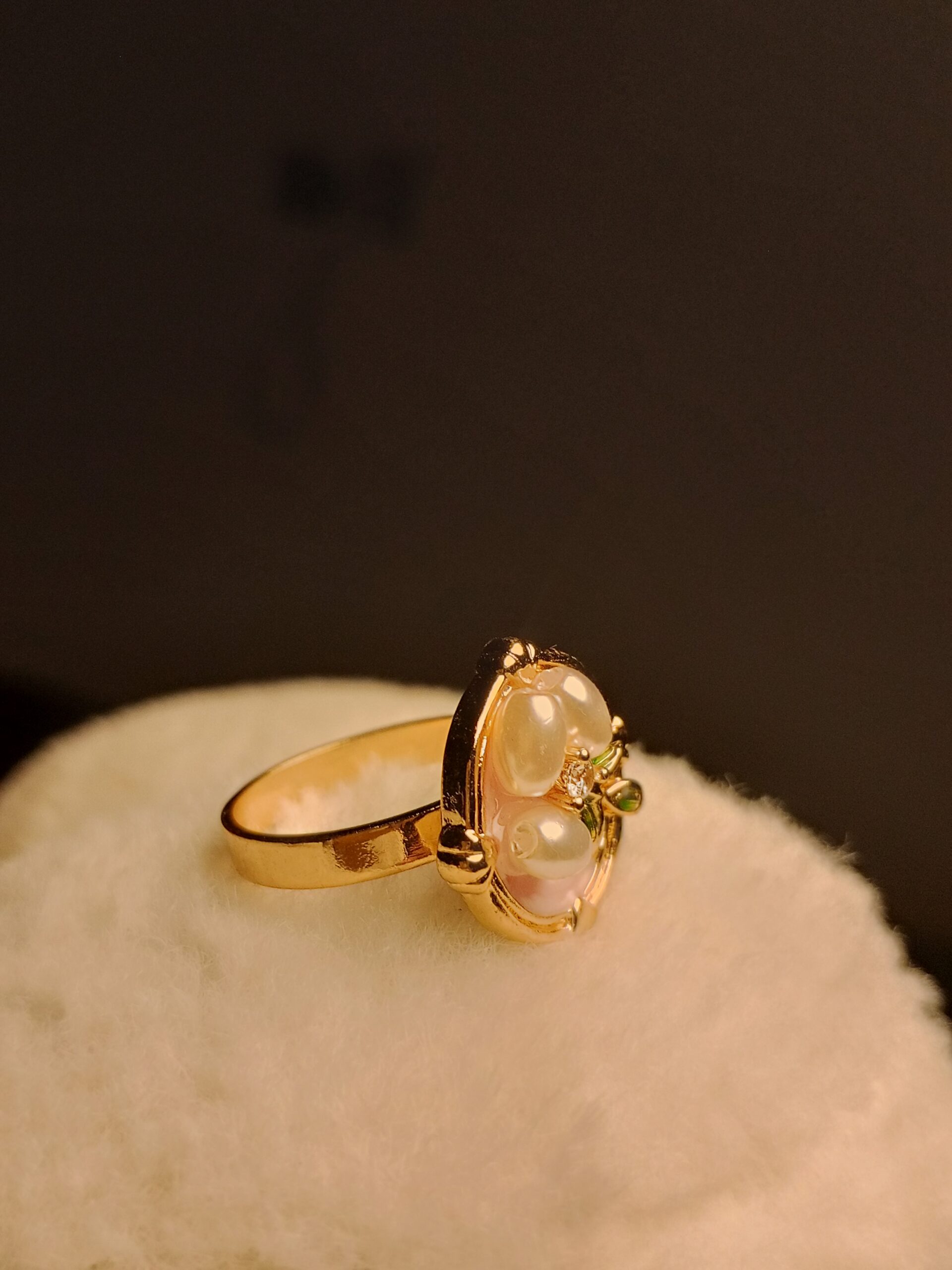 legant Gold-Toned Pearl & Leaf Ring | Vintage-Inspired Statement Jewelry