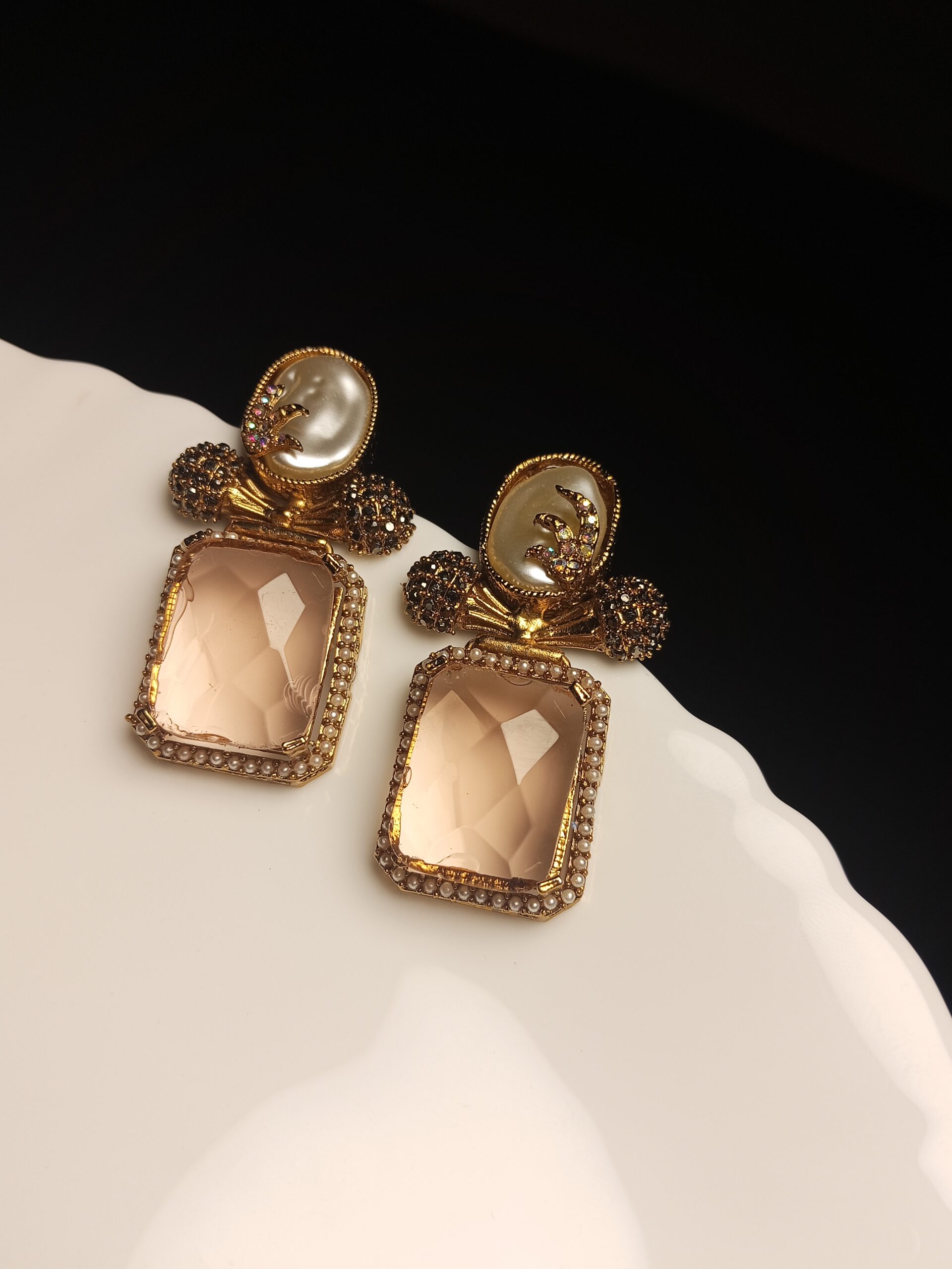 Luxurious Vintage Blush Pink Crystal Statement Drop Earrings | Antique Gold Tone