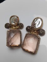 Capture old-world glamour with the Luxurious Vintage Blush Pink Statement Drop Earrings. These magnificent earrings are crafted in a rich, antique gold-tone metal that highlights their intricate detail. Each earring features a breathtaking design: a polished pearl cabochon sits at the top, secured by a jeweled ribbon bow, leading down to a large, breathtaking blush pink, faceted crystal set in a halo of tiny, shimmering stones. Their dramatic size and unique vintage aesthetic make them the ultimate accessory for a formal evening, wedding reception, or any event where you want to make an unforgettable entrance.
