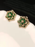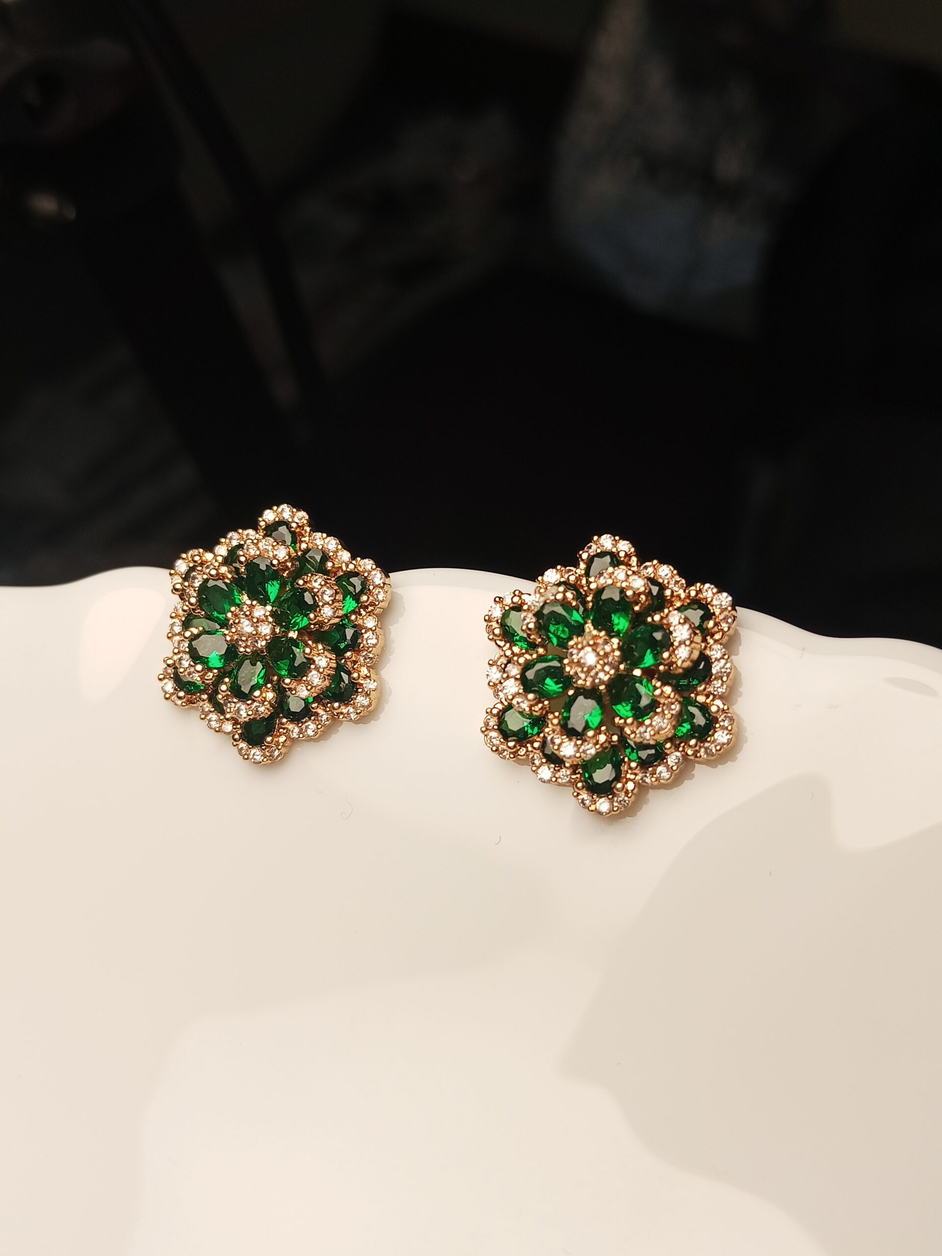 Luxury Emerald Green & Gold Flower Stud Earrings – Festive Bridal Jewelry
