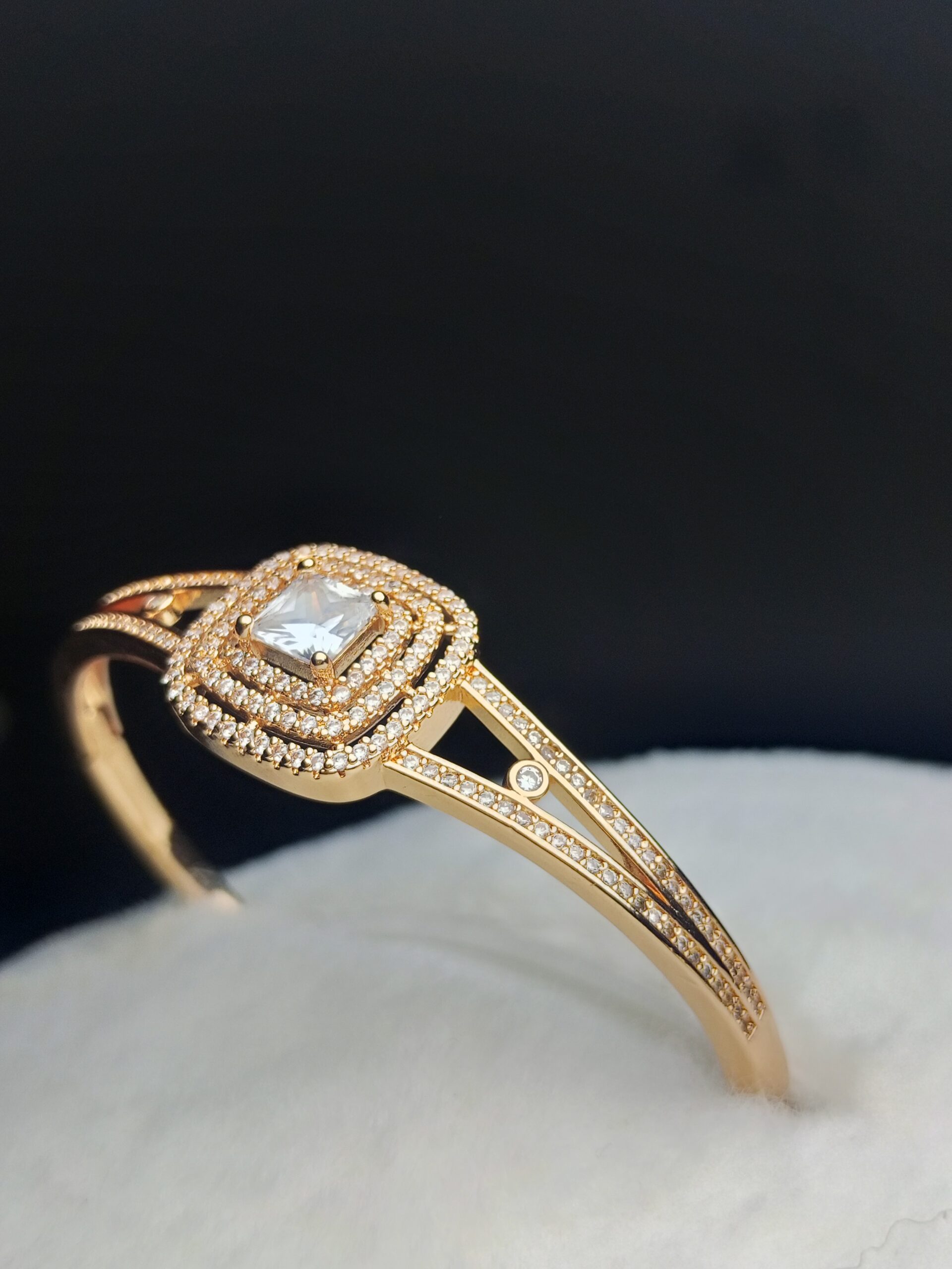Luxury Rose Gold Plated Bangle with Square Cut Crysta