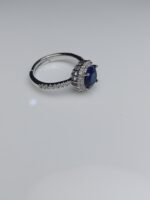 • Center Stone: Large oval-cut Royal Blue Sapphire simulant or high-grade Blue Zircon, offering a deep, captivating color.