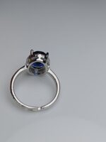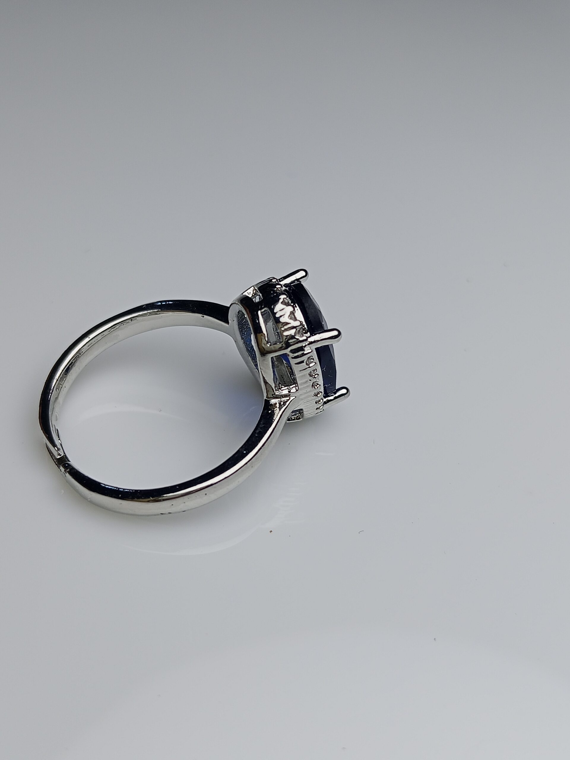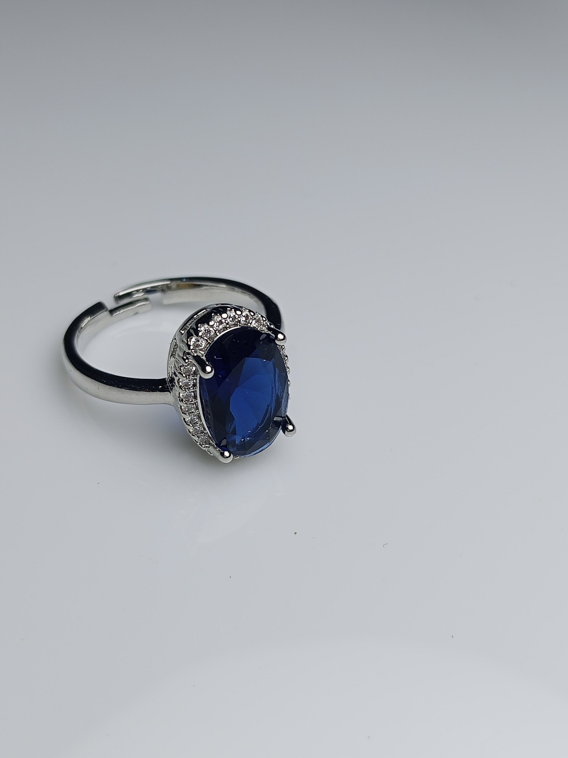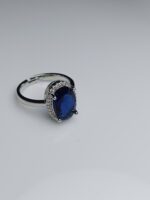 Majestic Oval Sapphire Halo Adjustable Silver Ring – Deep Blue Statement