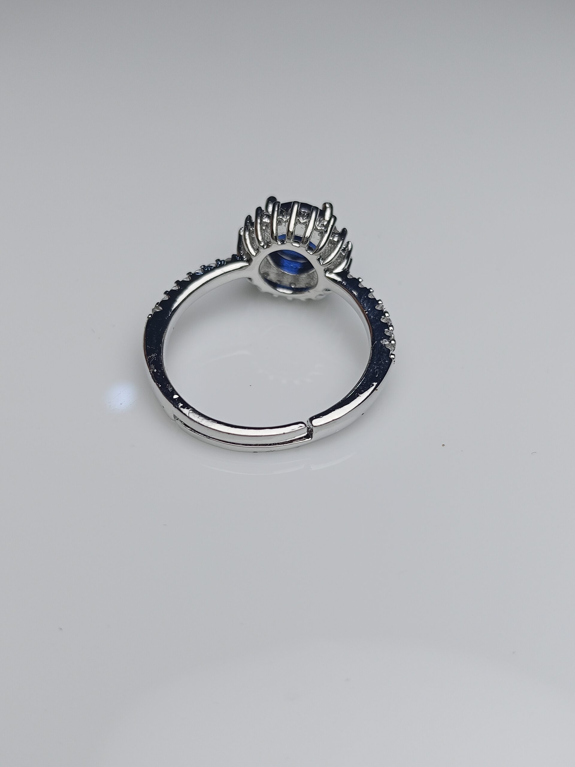 Majestic Oval Sapphire Halo Adjustable Silver Ring – Deep Blue Statement