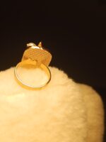 Embrace timeless beauty with our Mother-of-Pearl Inlay Floral Ring. This exquisite piece features a striking rectangular face set with a shimmering, ethically sourced mother-of-pearl background in soft hues of white and blush. A delicate gold-plated tulip or lily motif, complete with elegant leaves and a central pearl accent, is meticulously placed atop the inlay. The ring’s design evokes a charming, vintage-inspired aesthetic, making it an ideal accessory for special occasions or as a thoughtful gift. It is a true statement of grace and sophistication.