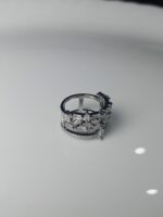 • Design: Wide, three-layer band that simulates a stacked ring look.