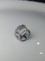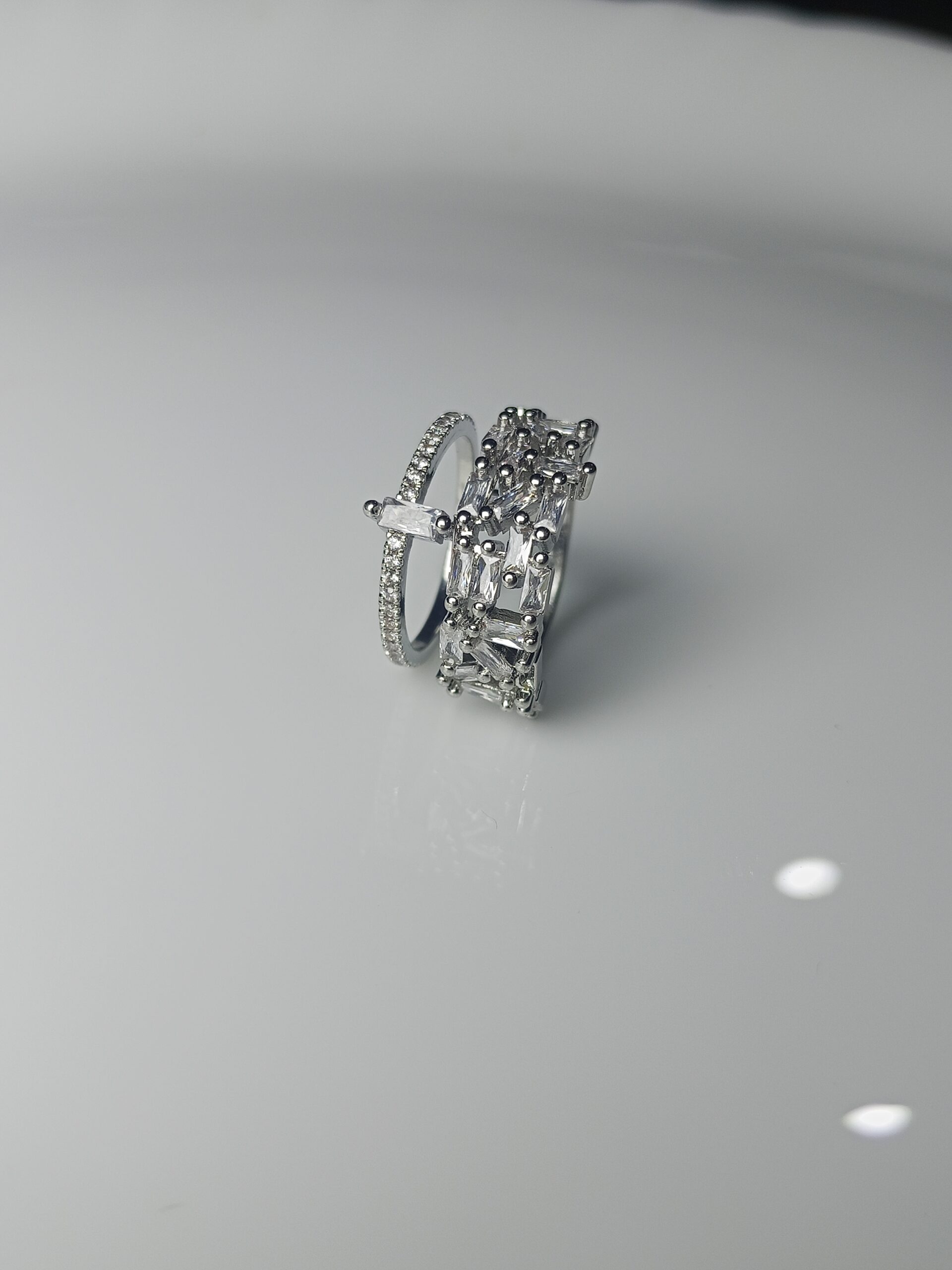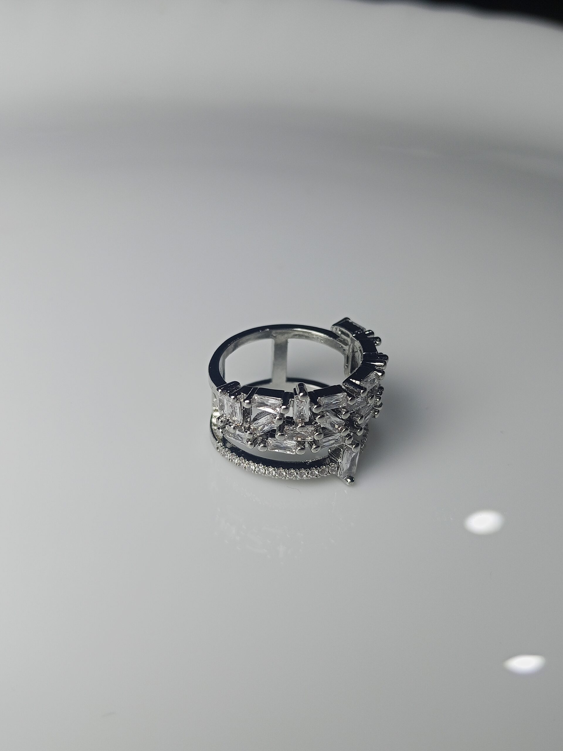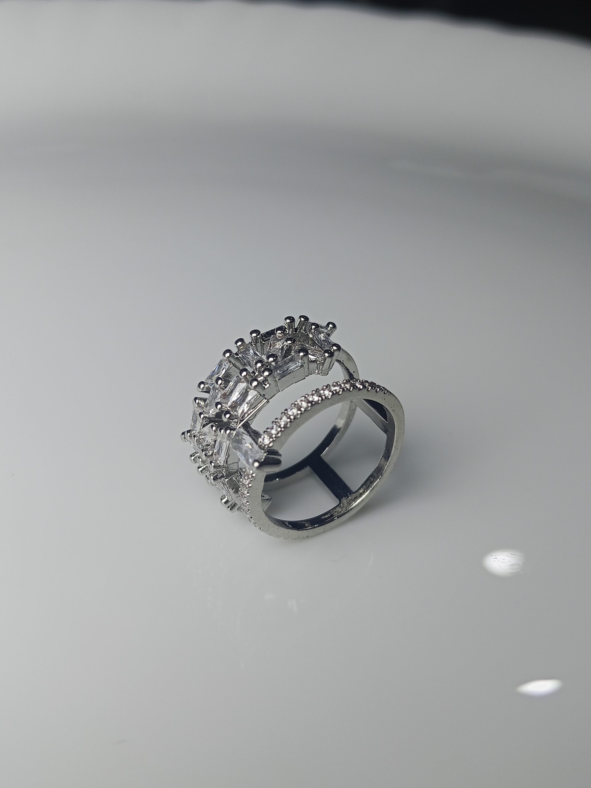 Multi-Row Baguette & Pave Statement Ring – Silver-Tone Wide Band CZ Jewelry