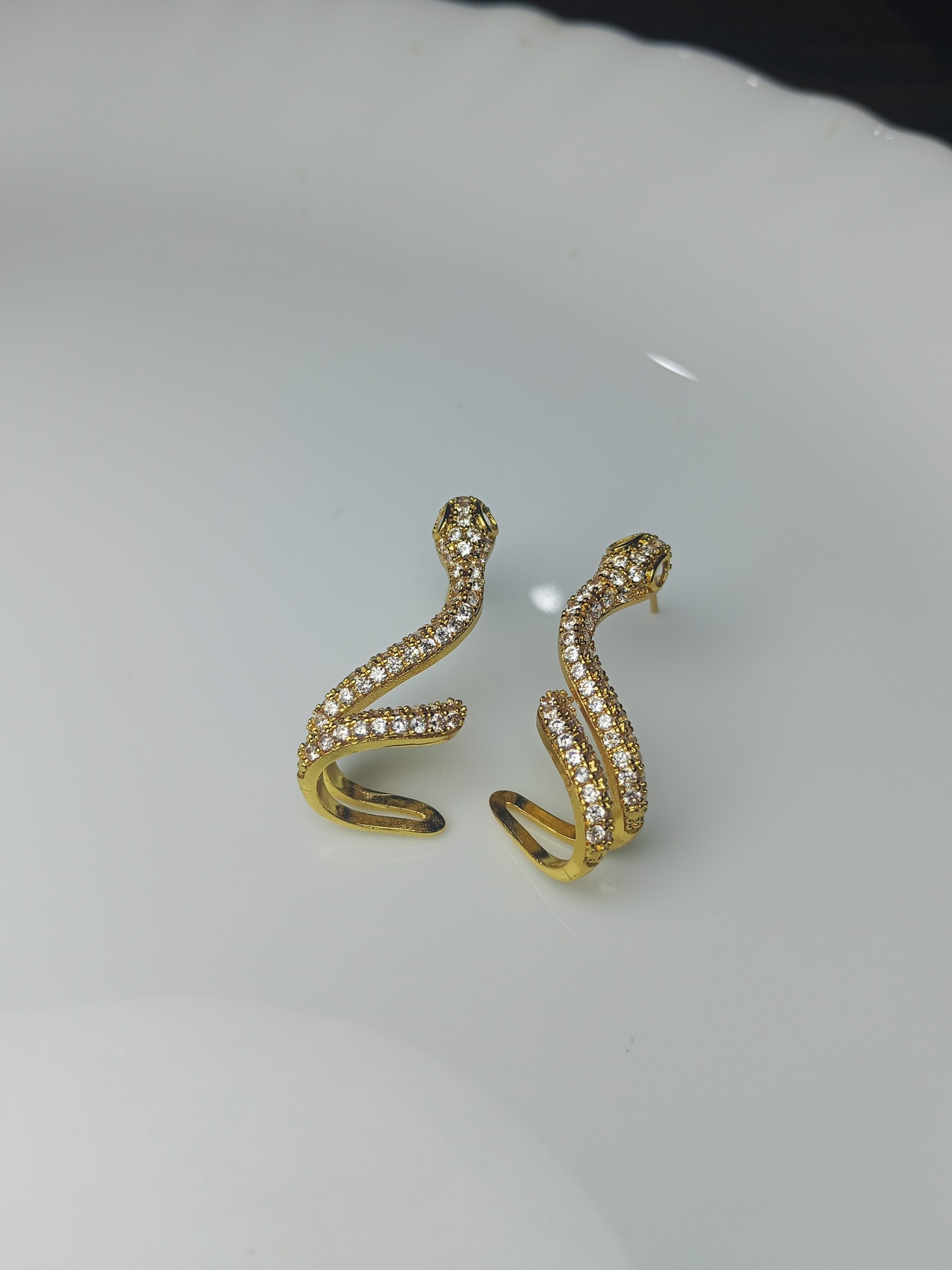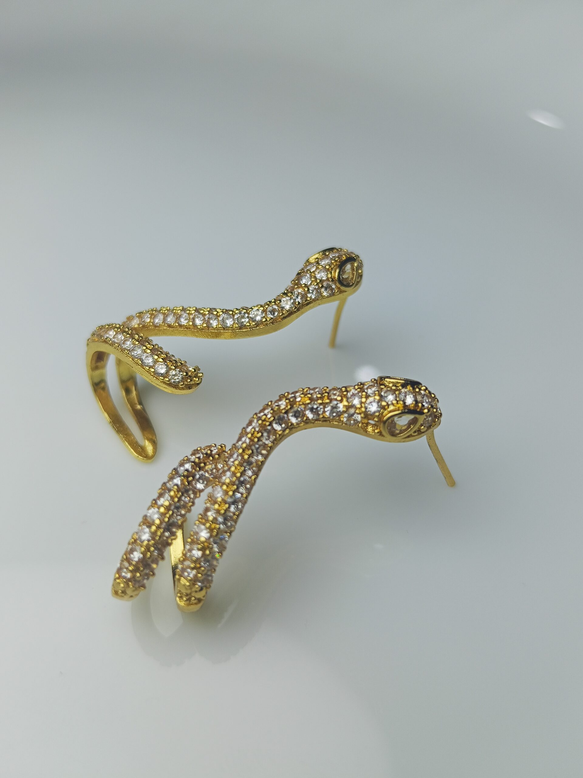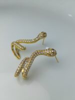 Pave-Set Gold-Tone Serpent Climber Earrings – Cubic Zirconia Snake Huggie Studs