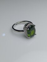 Add a touch of lush color and elegance with this striking Peridot Green Oval Halo Adjustable Ring. It features a large, captivating oval-cut Peridot Green (or Olive Green Zircon) center stone, known for its vibrant hue. The stone is surrounded by a brilliant halo of small white zircons, set in a polished silver-tone finish. The adjustable band ensures a comfortable and perfect fit for everyday wear or as a thoughtful birthstone gift.