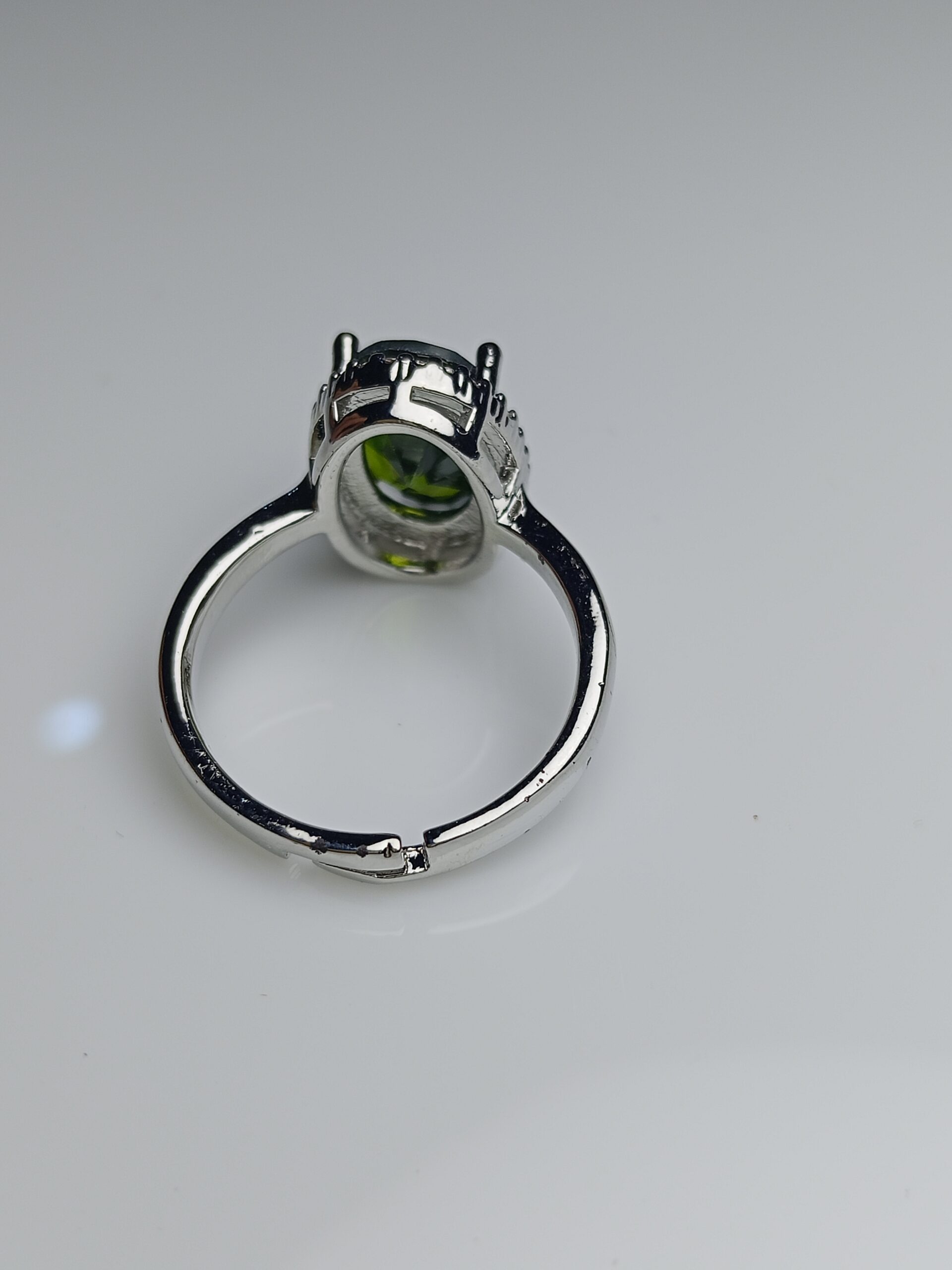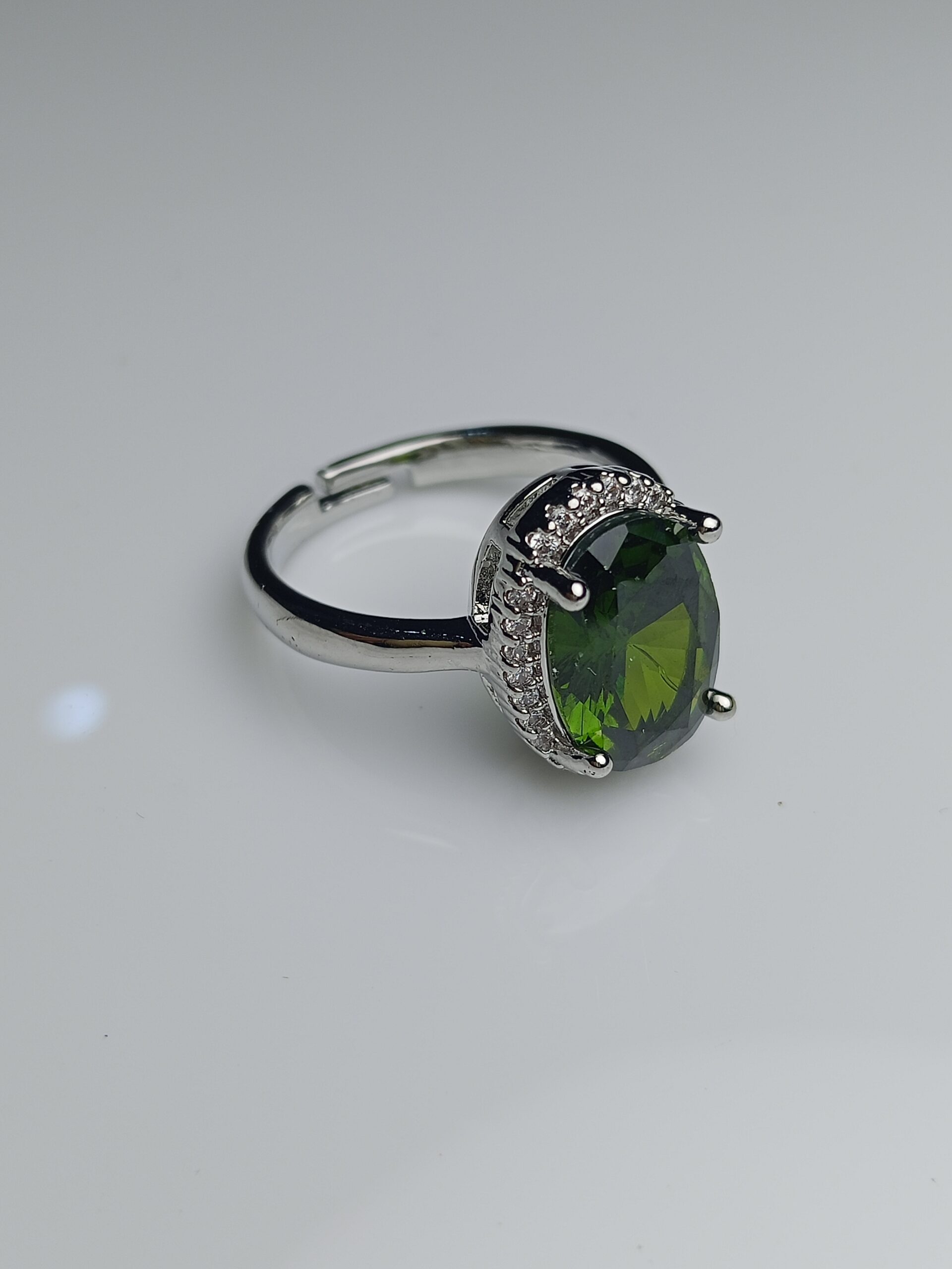 Peridot Green Oval Halo Adjustable Silver Ring – August Birthstone Style