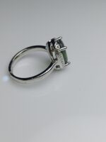 Emerald Cut Green Zircon Adjustable Silver Ring - Wide Pave Band Statement