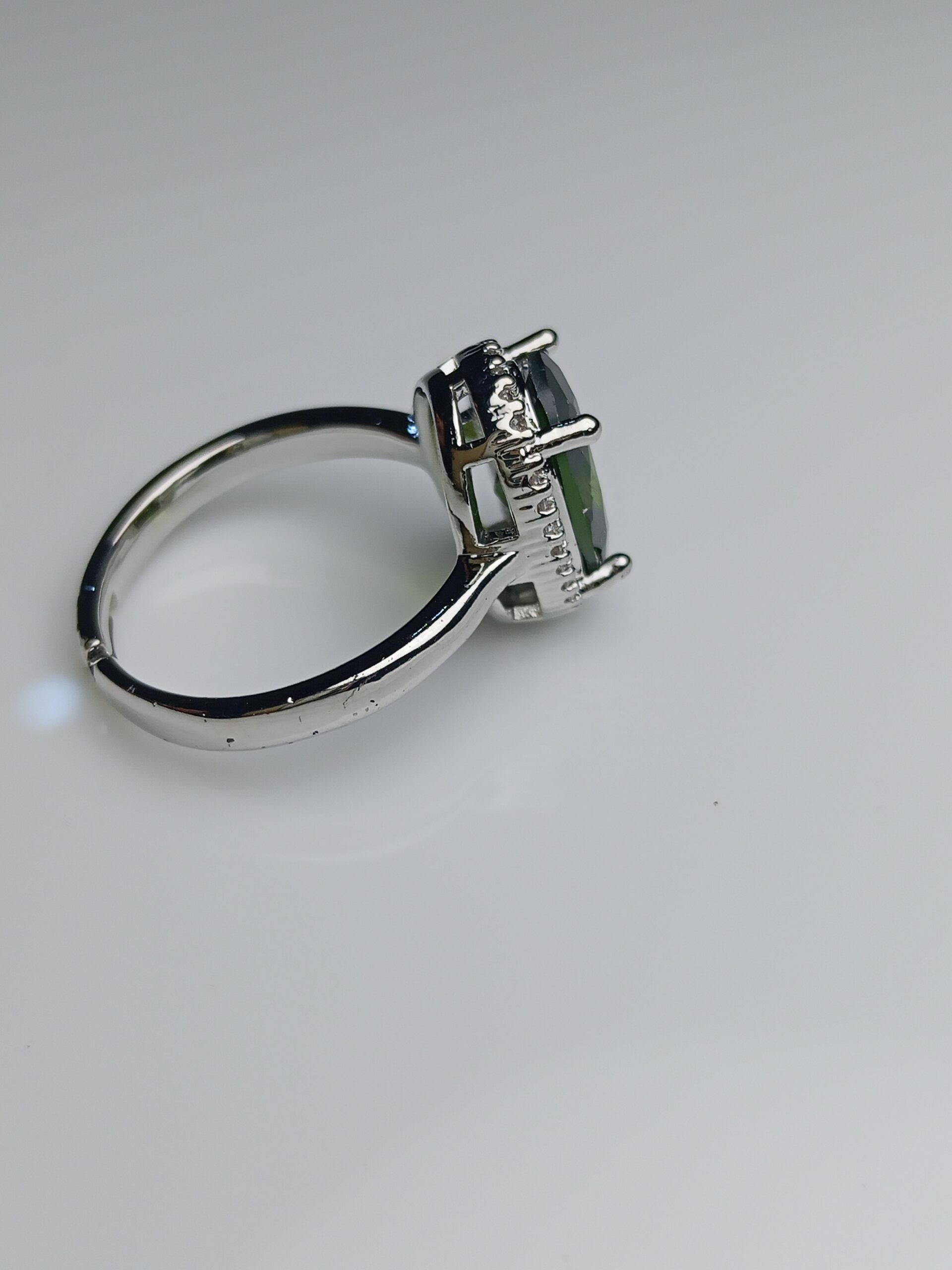 - Center Stone: Large oval-cut Peridot Green simulant or high-grade Zircon.