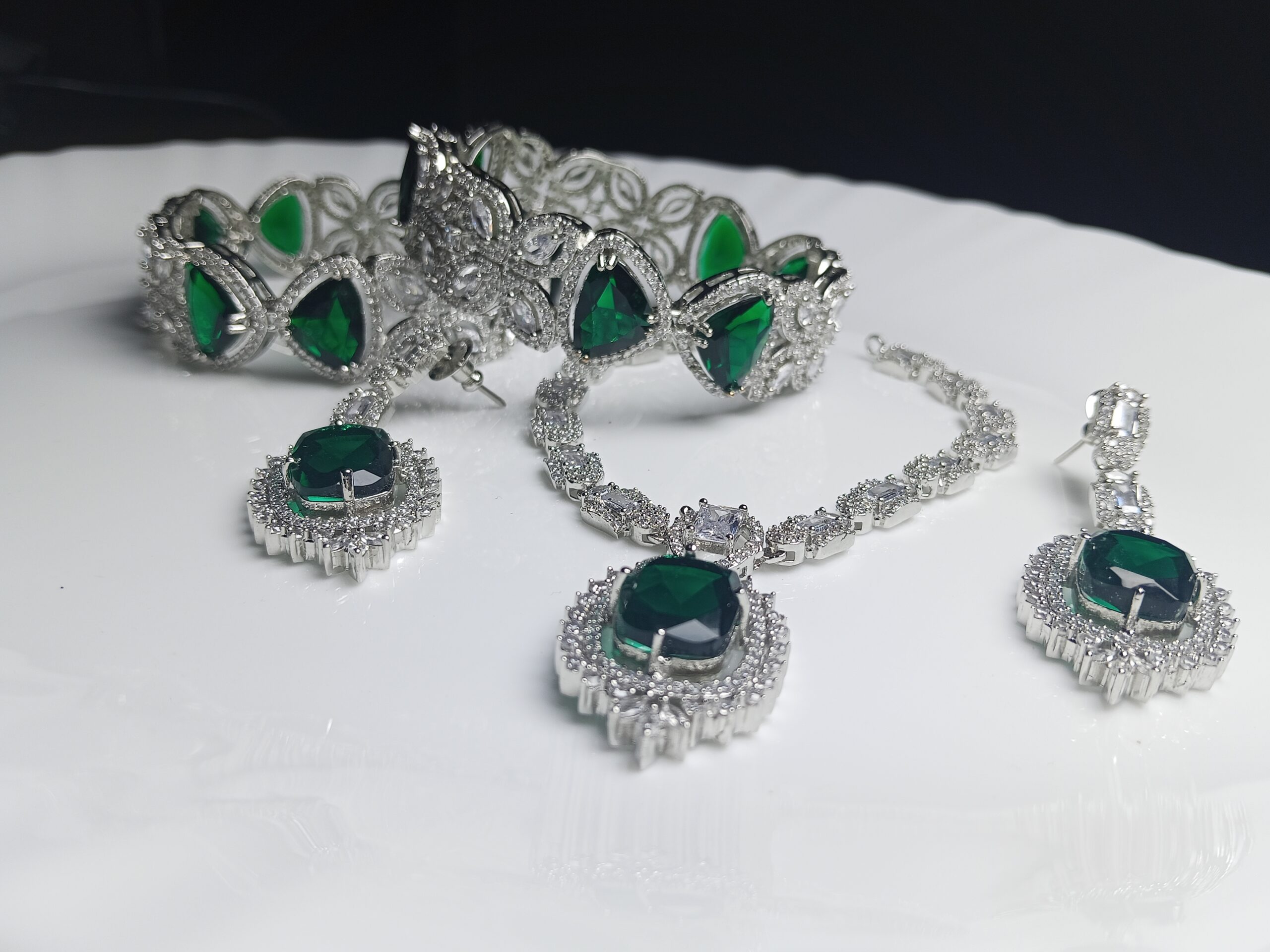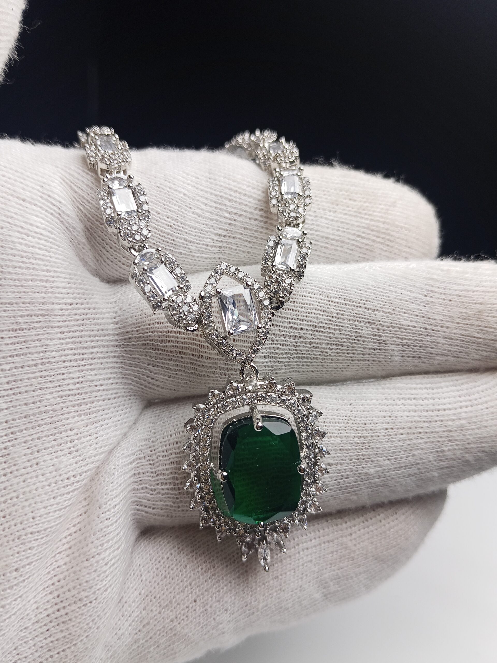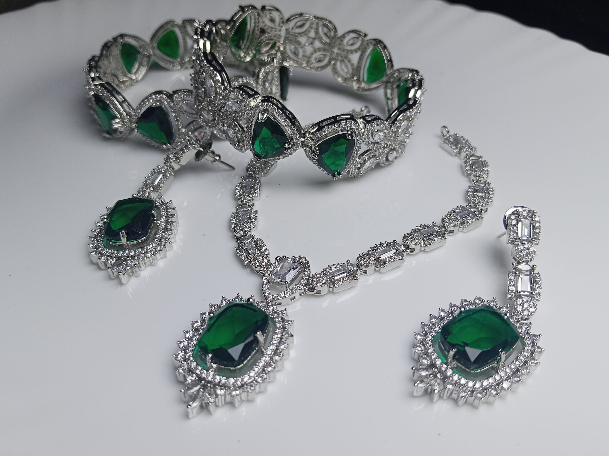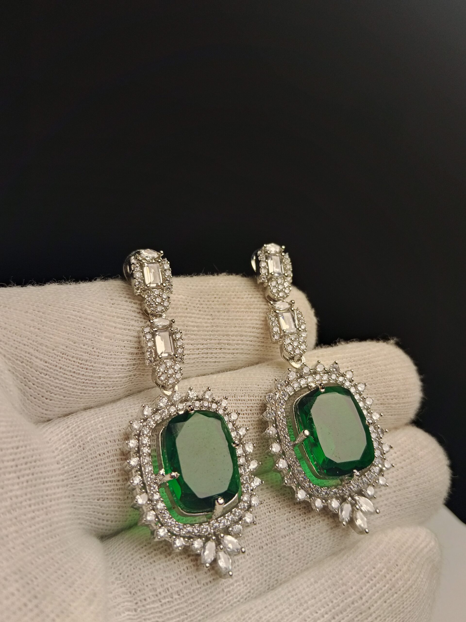 - Gemstone Details: Features large, rich Emerald Green stones, complemented by brilliant White/Clear AAA Grade Crystals.