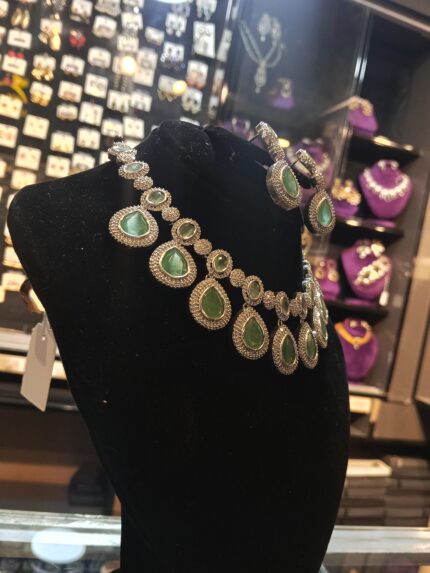 Antique Gold & Aqua Teardrop Necklace Set | Victorian Style Original price was: ₨ 9,500.Current price is: ₨ 8,500.