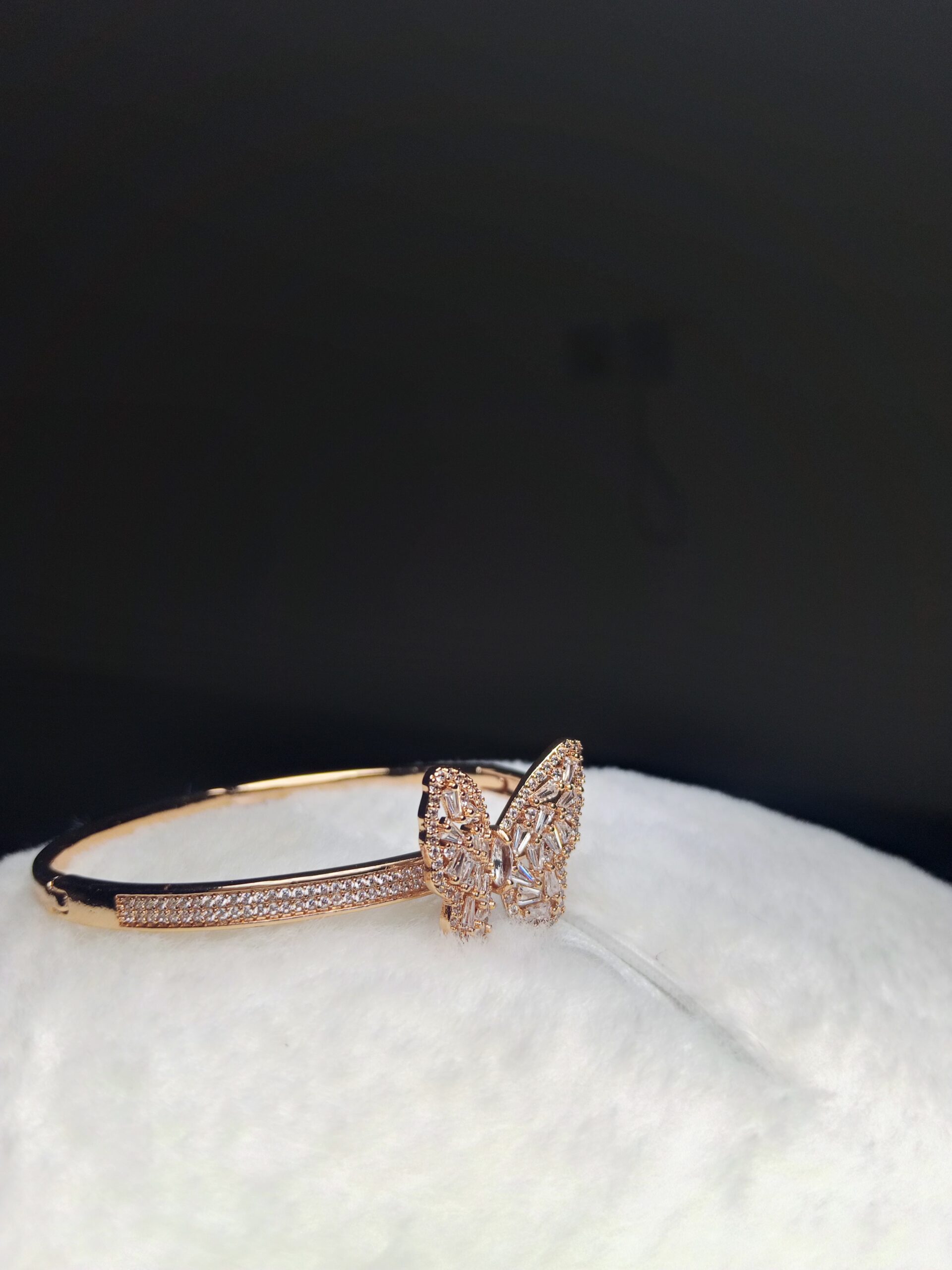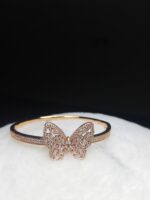Embrace the beauty of nature with a touch of luxury. This exquisite Rose Gold Butterfly Bangle Bracelet is a delicate and dazzling statement piece. It features a spectacular butterfly motif at the center, meticulously crafted to shimmer from every angle.