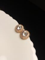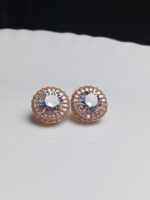 Add a touch of timeless glamour to any outfit with these exquisite Rose Gold Plated Stud Earrings. Each earring features a brilliant, faceted round Cubic Zirconia (CZ) stone at its center, surrounded by a delicate halo of smaller, shimmering CZ accents. The warm rose gold plating perfectly complements the stones, creating a luxurious and sophisticated sparkle that’s perfect for both daily wear and special occasions.