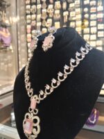 - Gemstone Color: Features soft, faceted Rose Quartz Pink (or light pink Topaz-colored) stones.