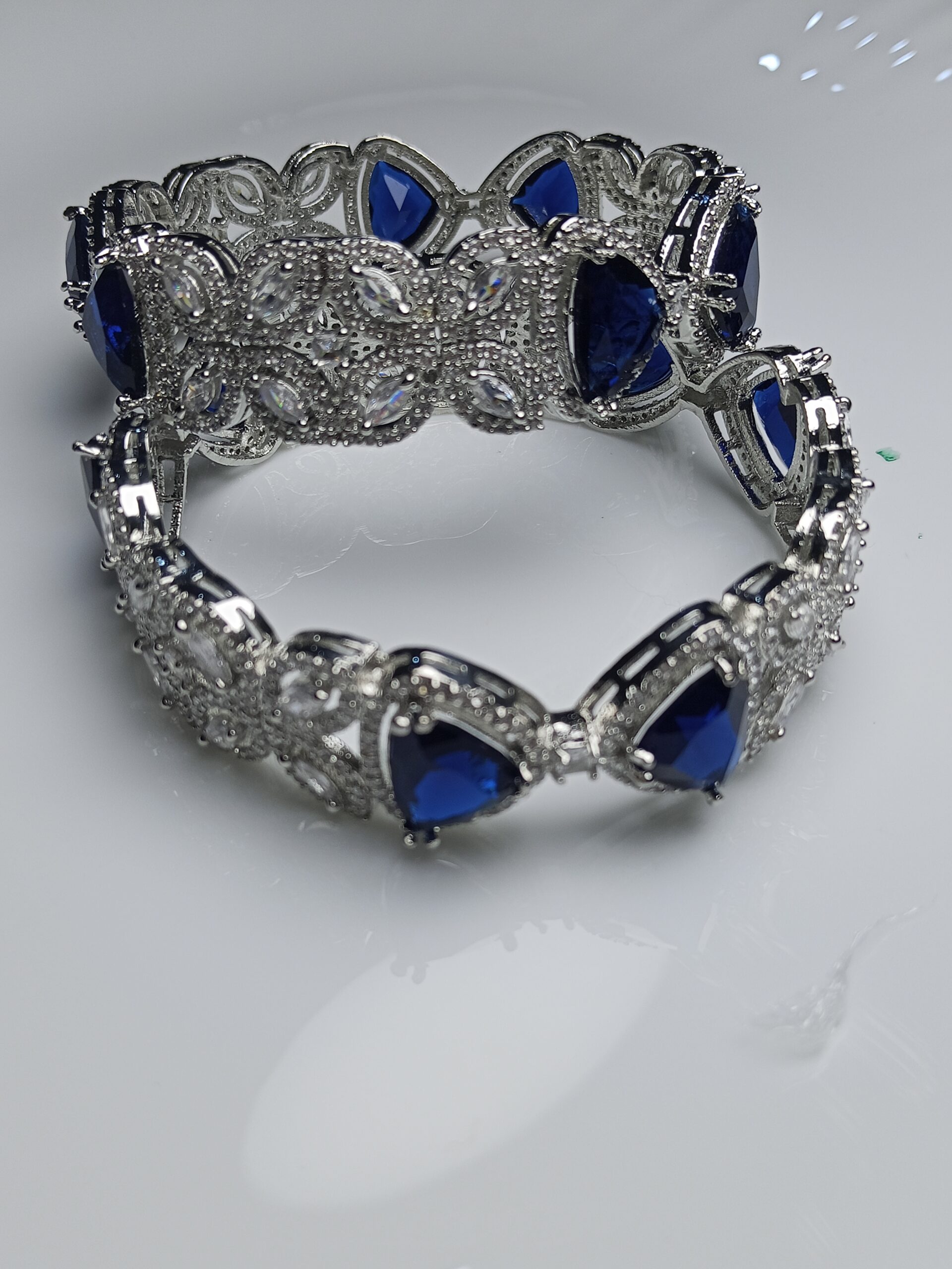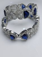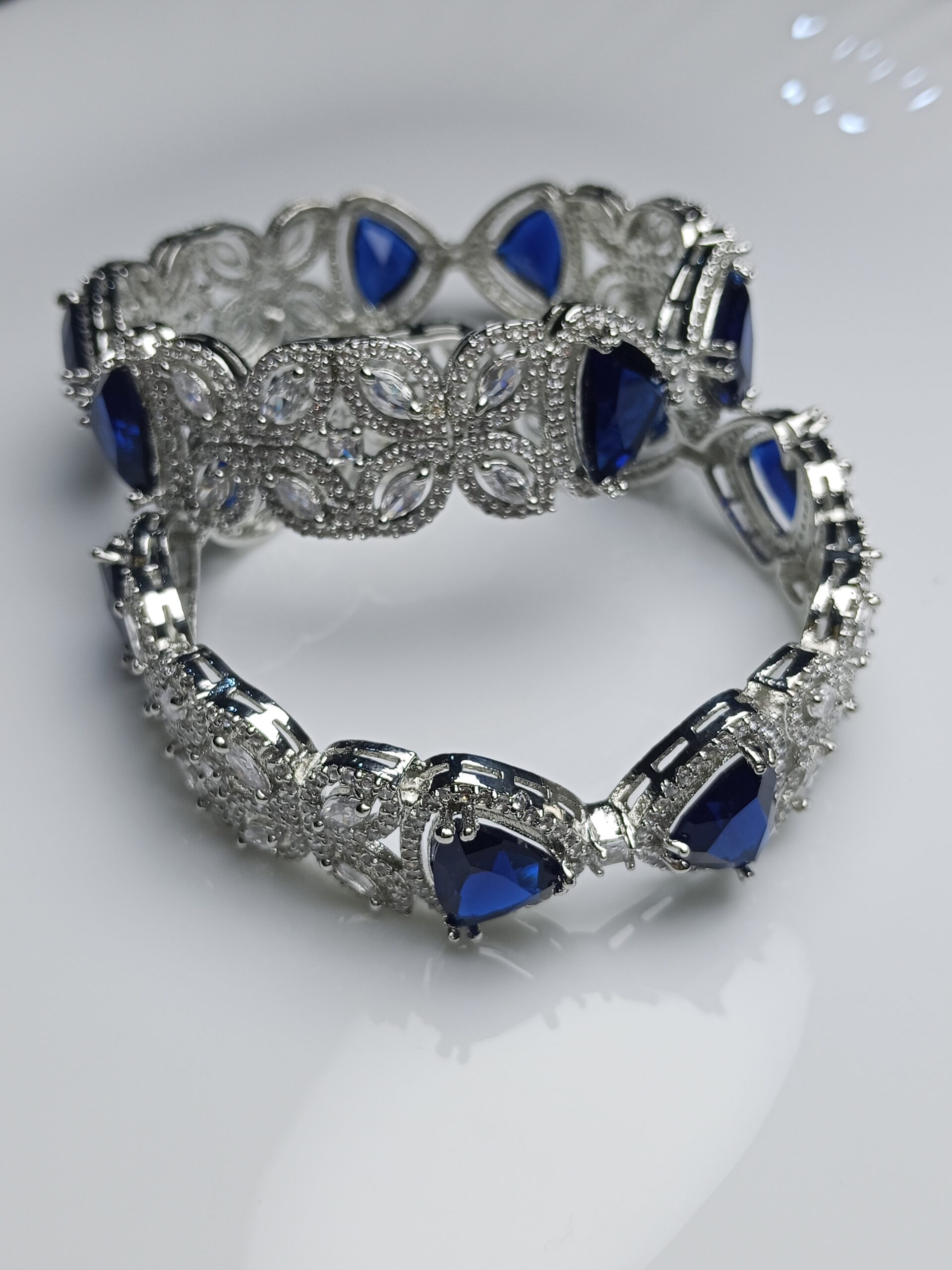 Royal Blue Cat-Eye Stone Zircon Bangles Set – Luxury Silver Bridal Kada
